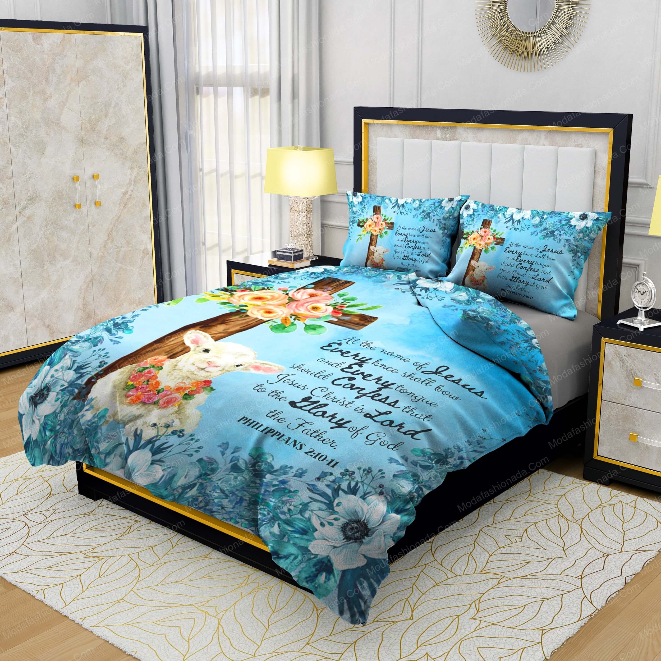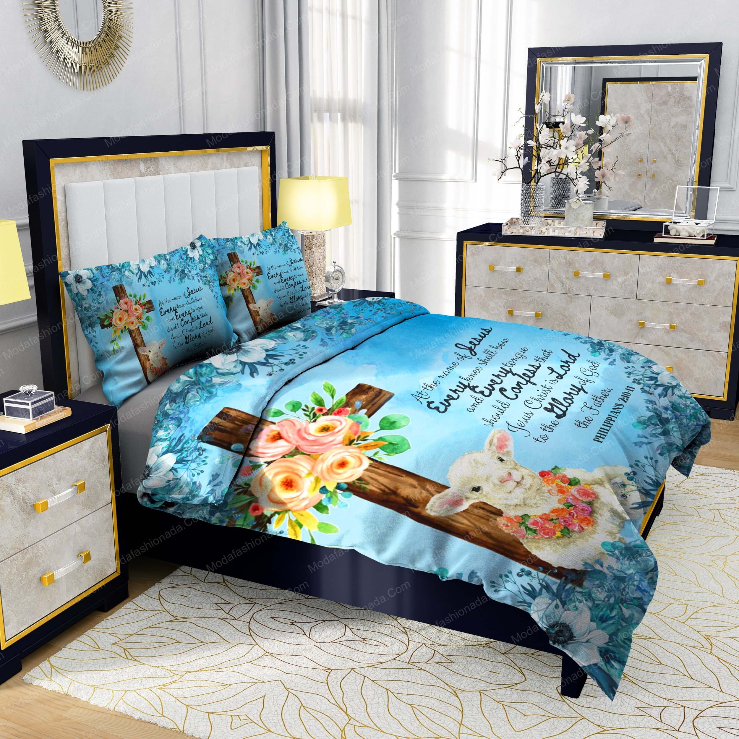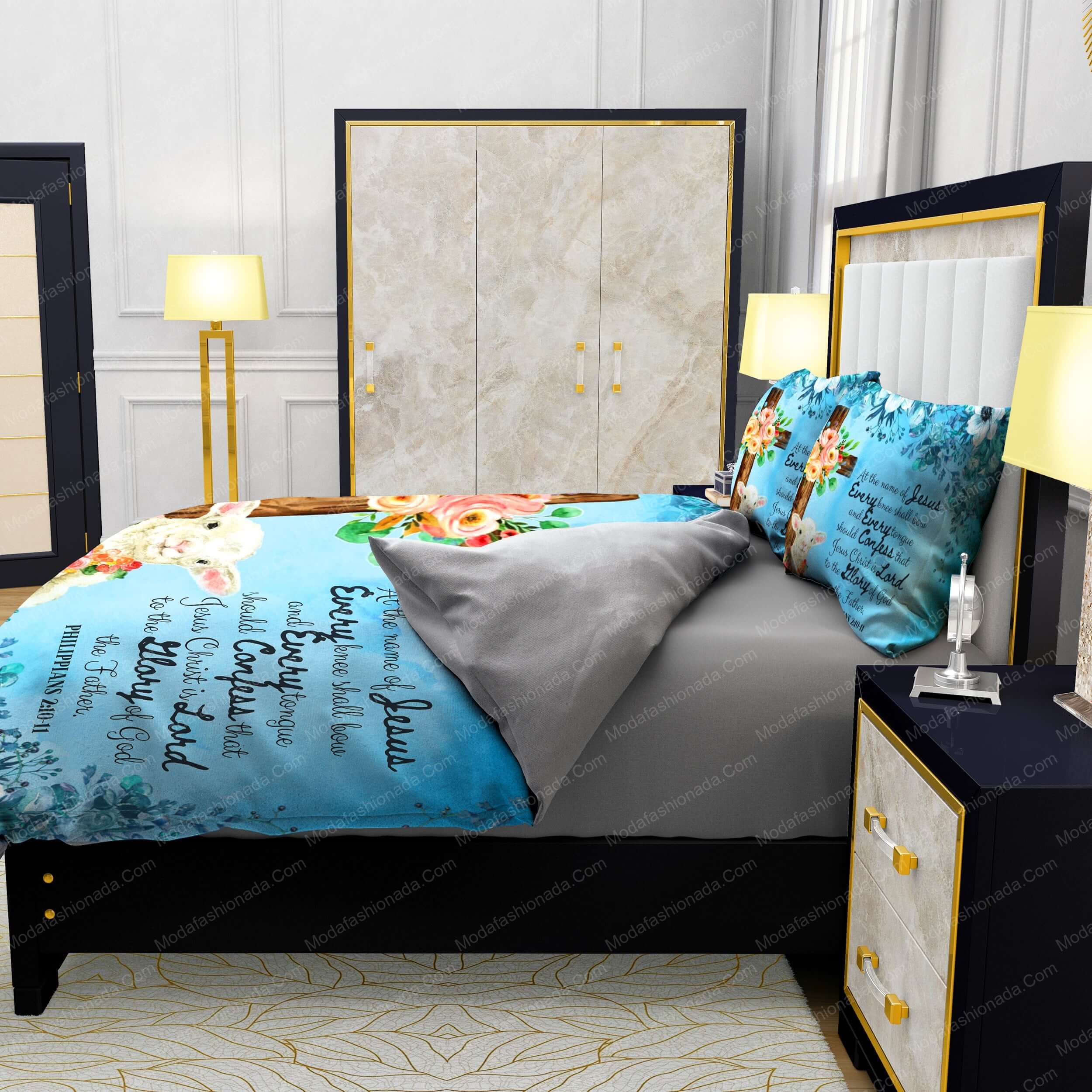 1. Description 2. SIZE CHART 3. PRINTS: Dye-sublimation printing 4. WASHABLE: Machine washable, soft mode. Machine wash cold, only non-chlorine bleach when needed, hang dry, cool iron on the reverse side or dry clean 5. PRODUCTION TIME: 3-5 Business Days. 6.SHIPPING : You will receive an email once your order ships that contain your tracking information. If you haven’t received tracking info within 3-5 business days, please contact us.Soothing bedsheets At The Name Of Jesus Every Knee Sholl Bow Bedding Sets make a great refreshing night's sleep.