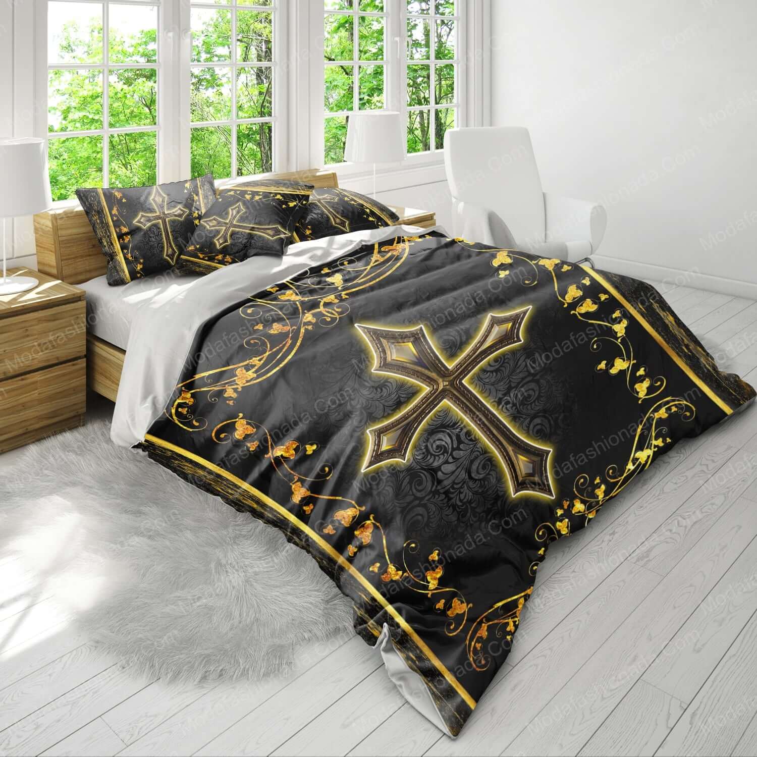 1. Description 2. SIZE CHART 3. PRINTS: Dye-sublimation printing 4. WASHABLE: Machine washable, soft mode. Machine wash cold, only non-chlorine bleach when needed, hang dry, cool iron on the reverse side or dry clean 5. PRODUCTION TIME: 3-5 Business Days. 6.SHIPPING : You will receive an email once your order ships that contain your tracking information. If you haven’t received tracking info within 3-5 business days, please contact us.Soothing bedsheets Cross Jesus Black And Gold Background Bedding Sets make a great refreshing night's sleep.