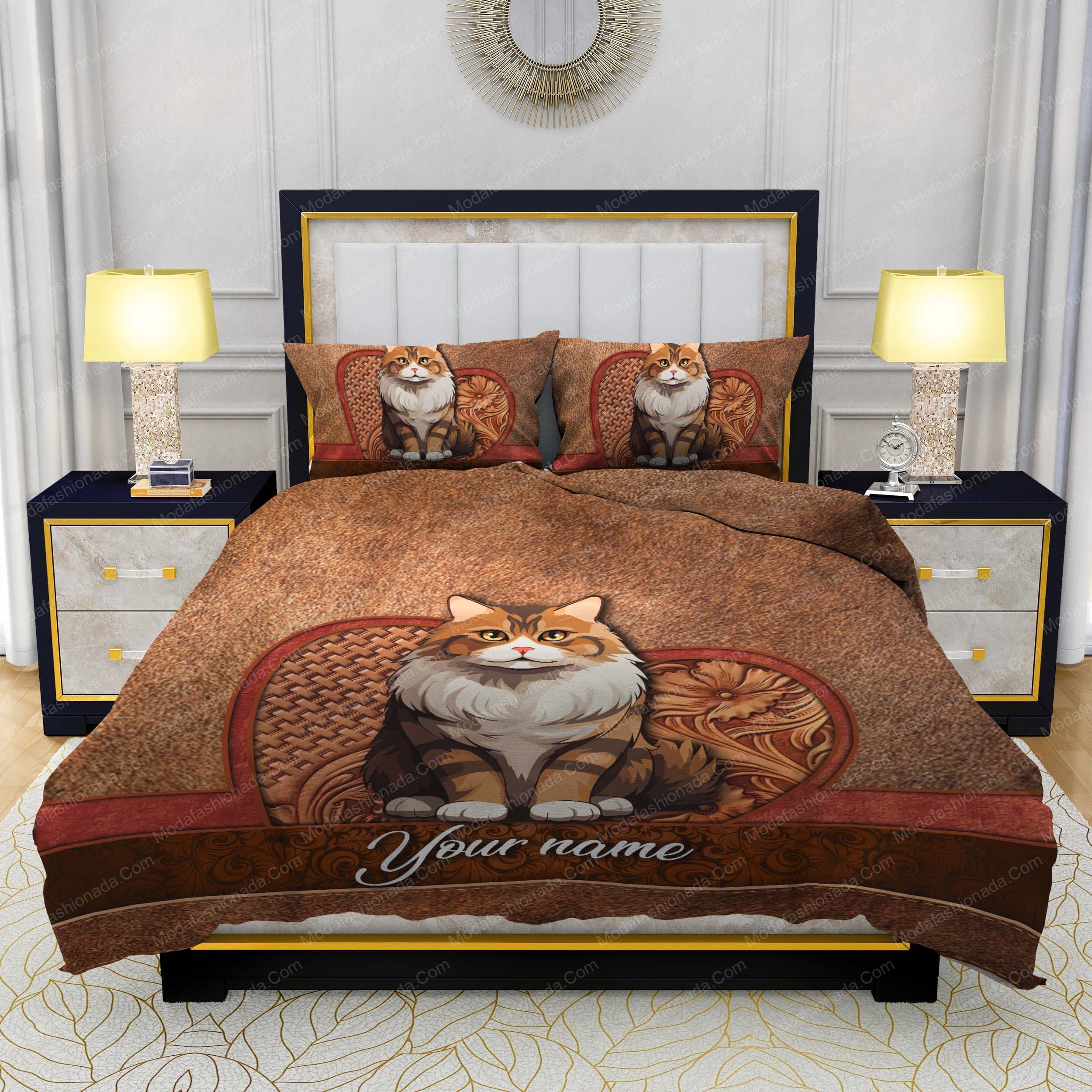 1. Description 2. SIZE CHART 3. PRINTS: Dye-sublimation printing 4. WASHABLE: Machine washable, soft mode. Machine wash cold, only non-chlorine bleach when needed, hang dry, cool iron on the reverse side or dry clean 5. PRODUCTION TIME: 3-5 Business Days. 6.SHIPPING : You will receive an email once your order ships that contain your tracking information. If you haven’t received tracking info within 3-5 business days, please contact us.Soothing bedsheets Custom Name Siberian Cat Lover Cat Gift Bedding Sets make a great refreshing night's sleep.