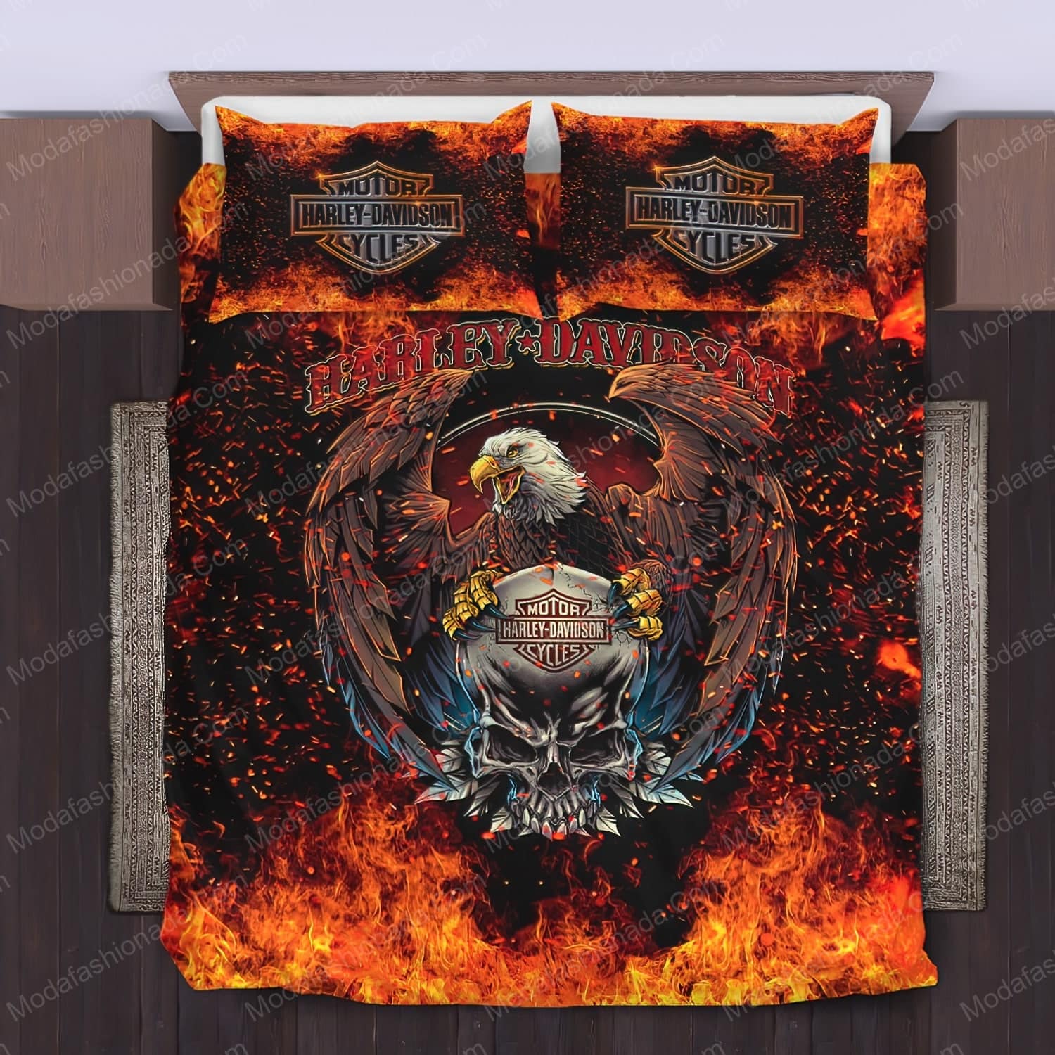 - You deserve better than an average bed linen! With our premium line, product Fire Eagle With Skull Harley Davidson Bedding Sets , you show the world that you live your life with class. Go ahead and indulge in luxury, experience unparalleled comfort, and give yourself moments of peace like never before.