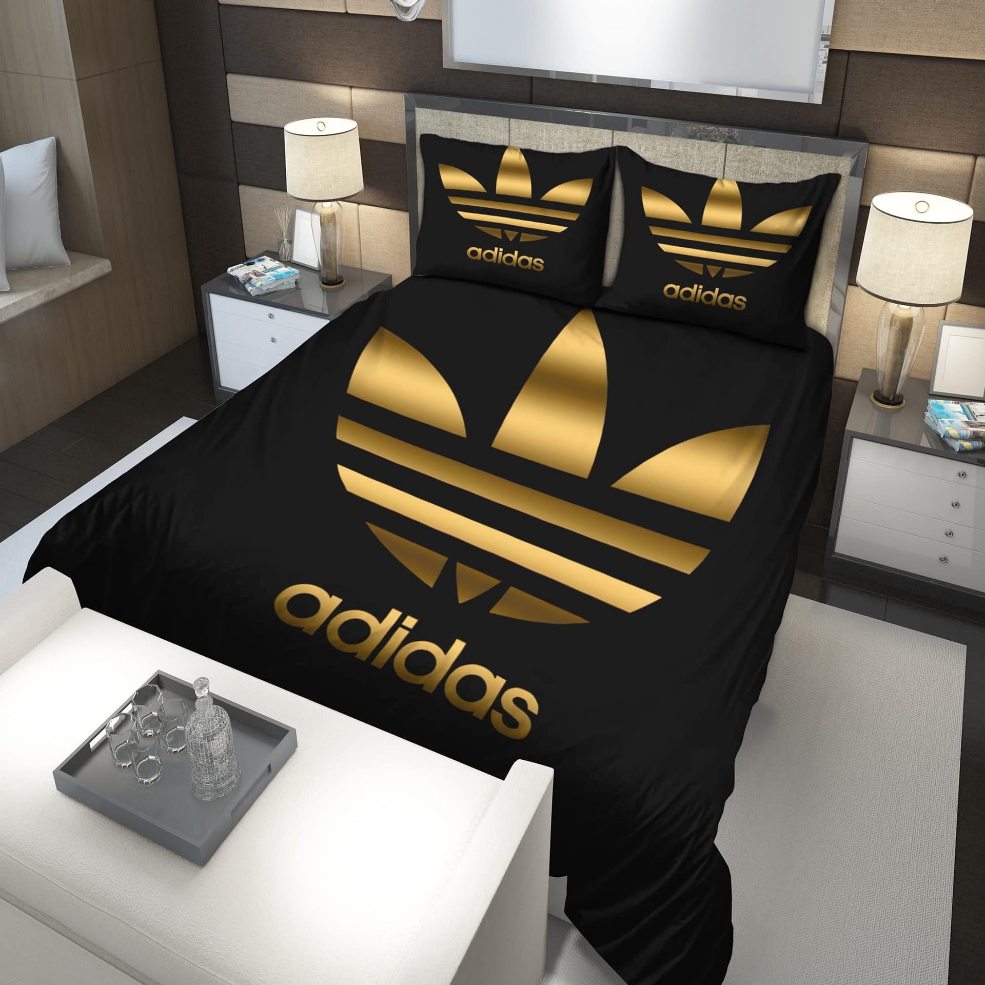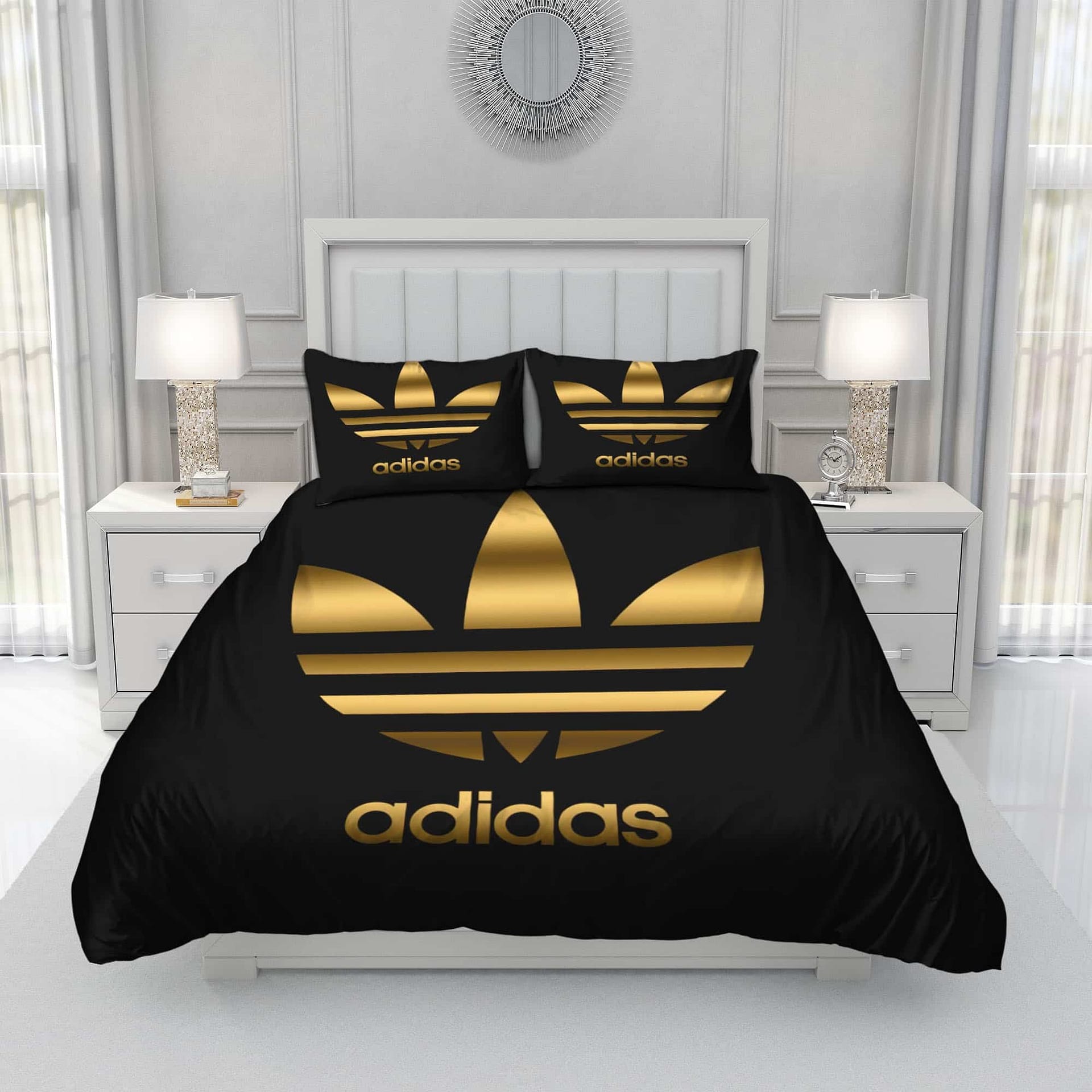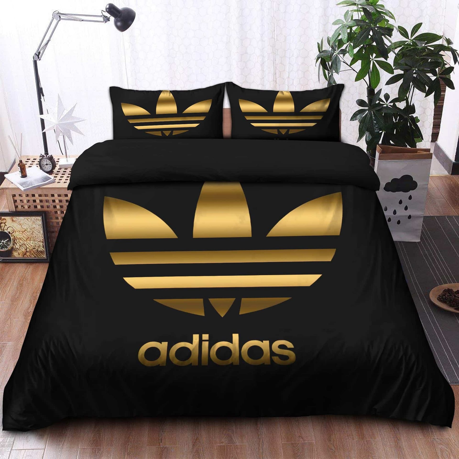 - You deserve better than an average bed linen! With our premium line, product Gold Adidas Logo Bedding Set , you show the world that you live your life with class. Go ahead and indulge in luxury, experience unparalleled comfort, and give yourself moments of peace like never before.