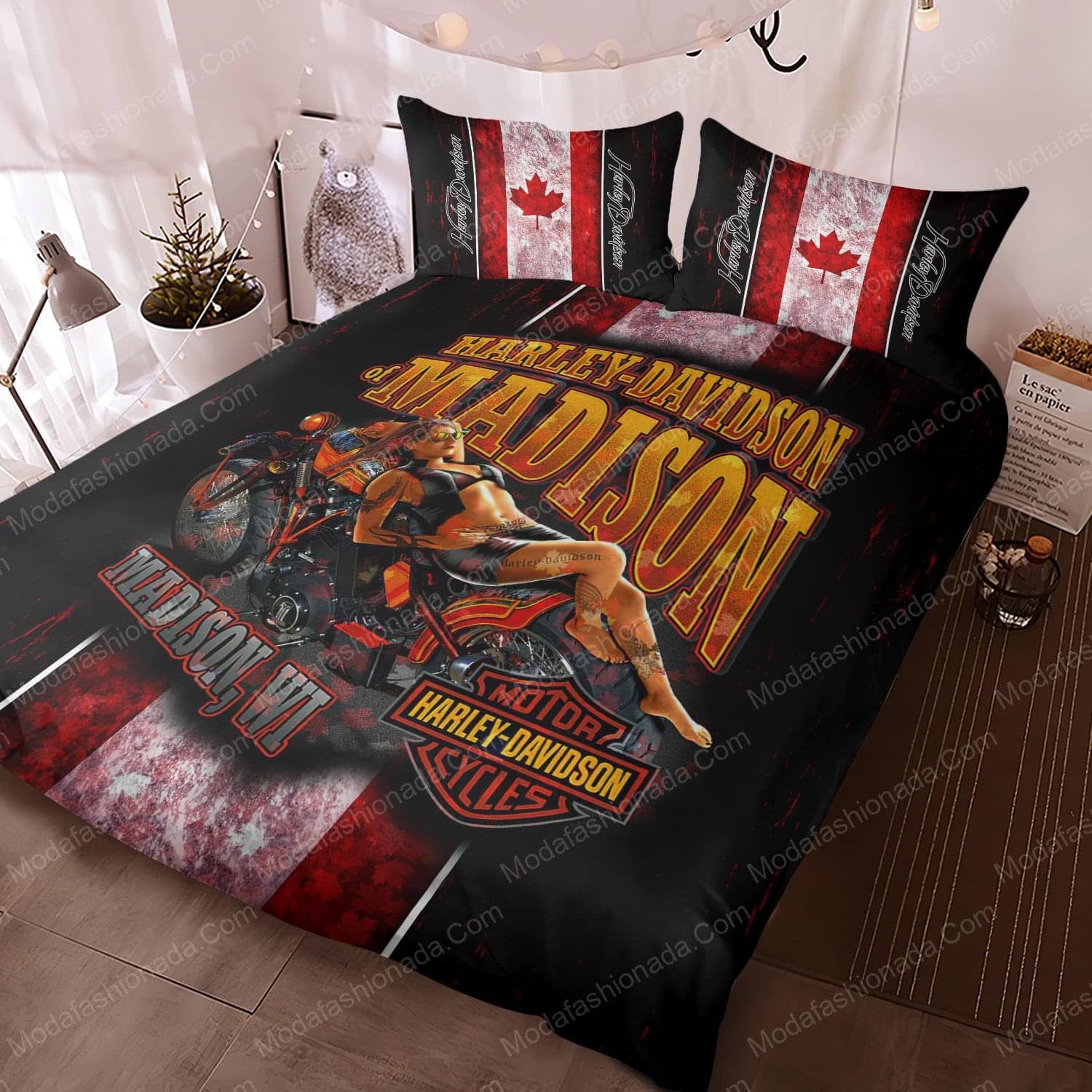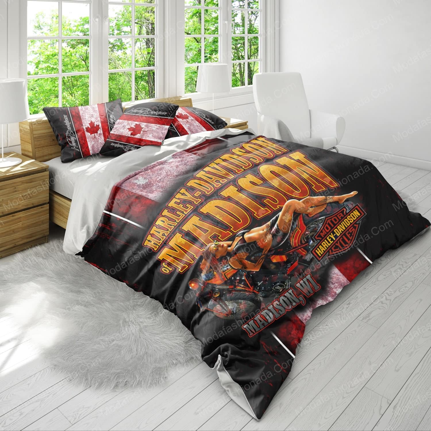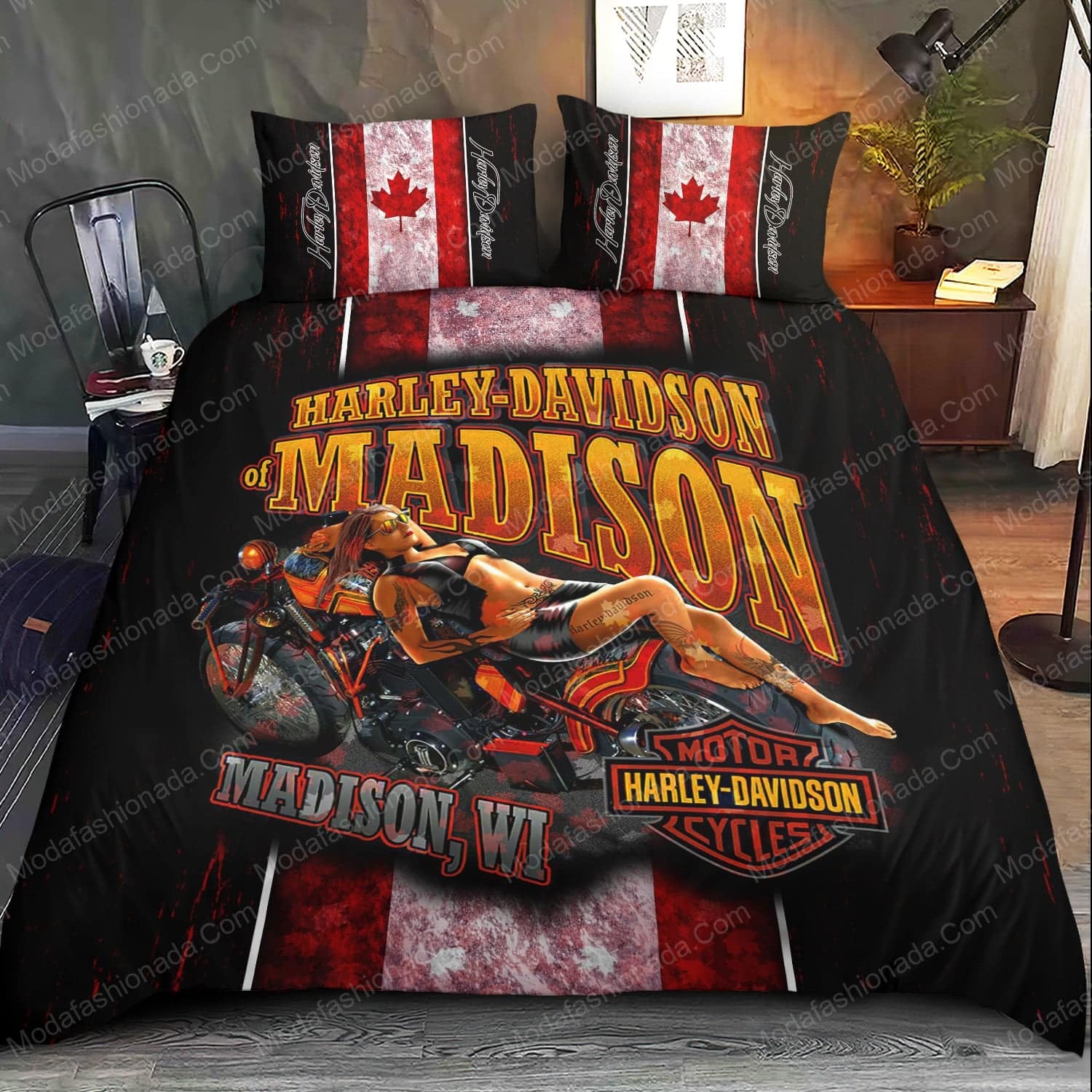 - You deserve better than an average bed linen! With our premium line, product Harley-Davidson of Madison Bedding Sets , you show the world that you live your life with class. Go ahead and indulge in luxury, experience unparalleled comfort, and give yourself moments of peace like never before.