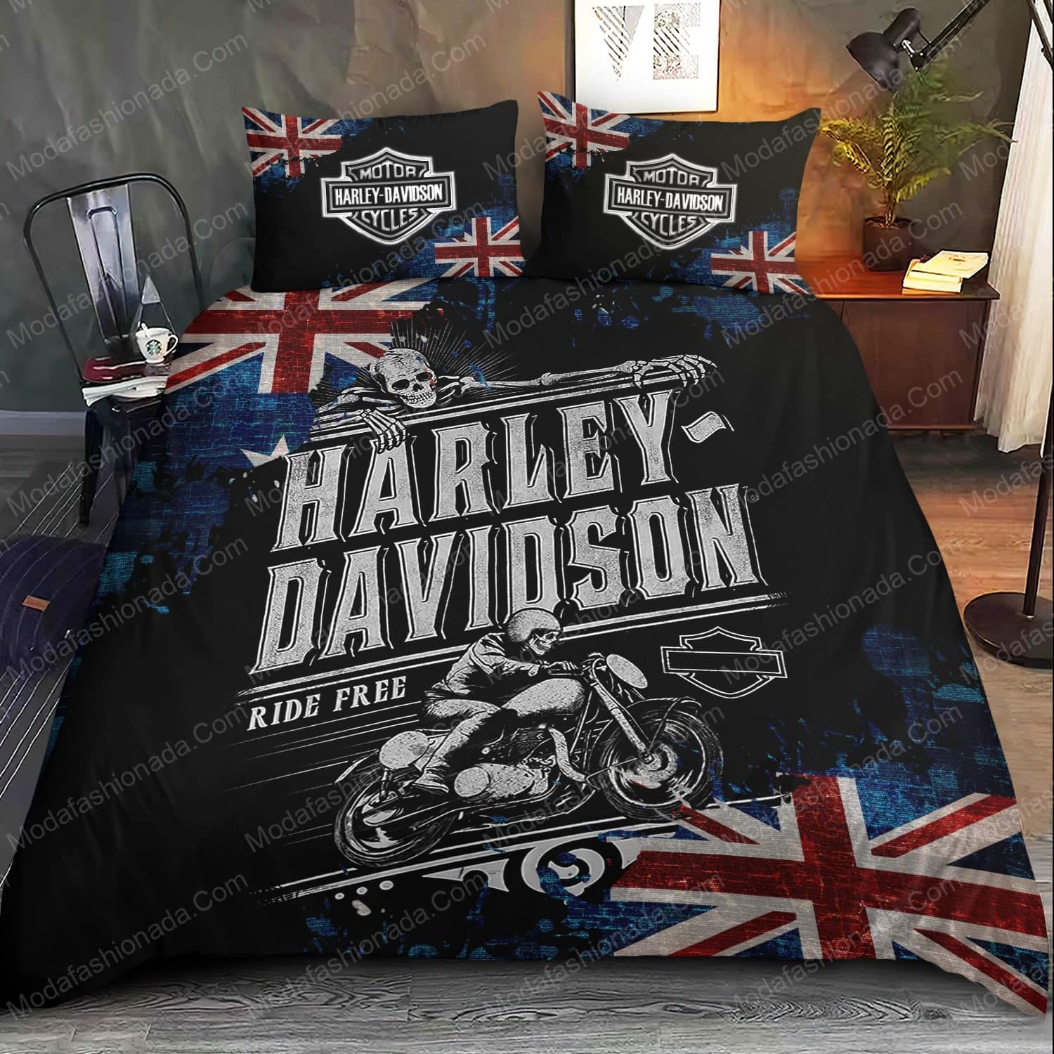 - You deserve better than an average bed linen! With our premium line, product Harley Davidson Ride Free Motorcycle And Australia Flag Bedding Sets , you show the world that you live your life with class. Go ahead and indulge in luxury, experience unparalleled comfort, and give yourself moments of peace like never before.