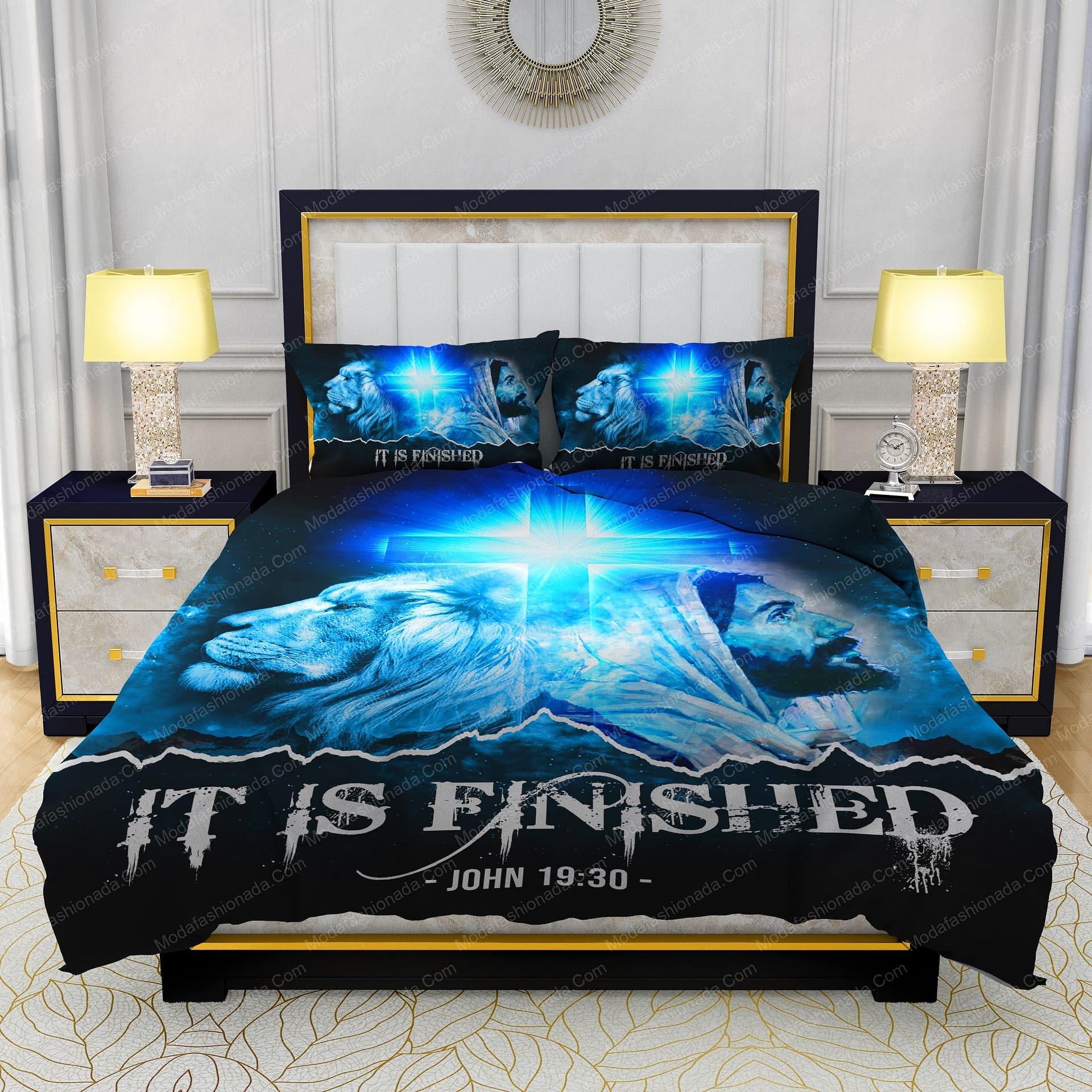 1. Description 2. SIZE CHART 3. PRINTS: Dye-sublimation printing 4. WASHABLE: Machine washable, soft mode. Machine wash cold, only non-chlorine bleach when needed, hang dry, cool iron on the reverse side or dry clean 5. PRODUCTION TIME: 3-5 Business Days. 6.SHIPPING : You will receive an email once your order ships that contain your tracking information. If you haven’t received tracking info within 3-5 business days, please contact us.Soothing bedsheets Jesus Cross It Is Finished Lion Bedding Sets make a great refreshing night's sleep.