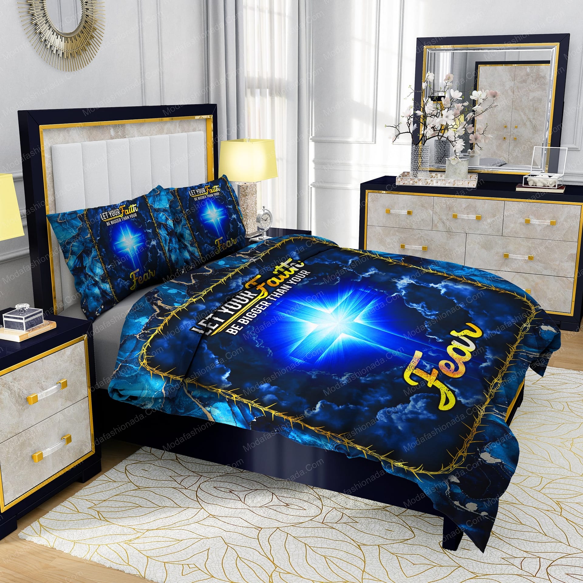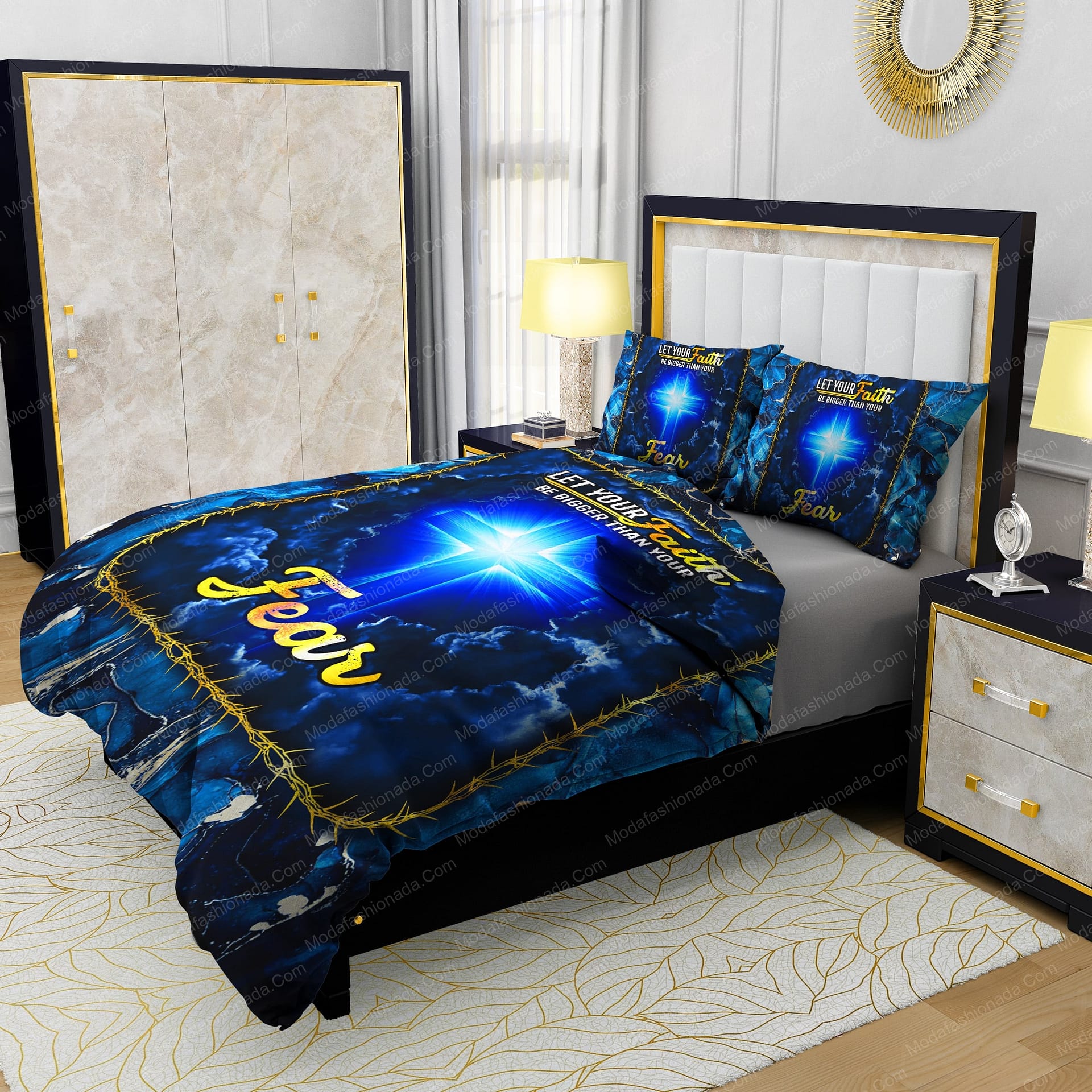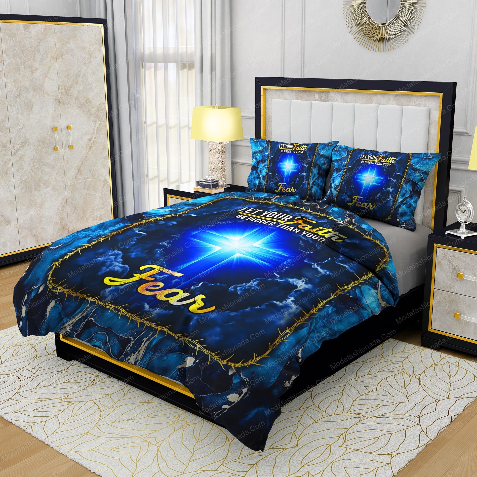 1. Description 2. SIZE CHART 3. PRINTS: Dye-sublimation printing 4. WASHABLE: Machine washable, soft mode. Machine wash cold, only non-chlorine bleach when needed, hang dry, cool iron on the reverse side or dry clean 5. PRODUCTION TIME: 3-5 Business Days. 6.SHIPPING : You will receive an email once your order ships that contain your tracking information. If you haven’t received tracking info within 3-5 business days, please contact us.Soothing bedsheets Jesus Cross Let Your Faith Be Bigger Than Your Fear Bedding Sets make a great refreshing night's sleep.