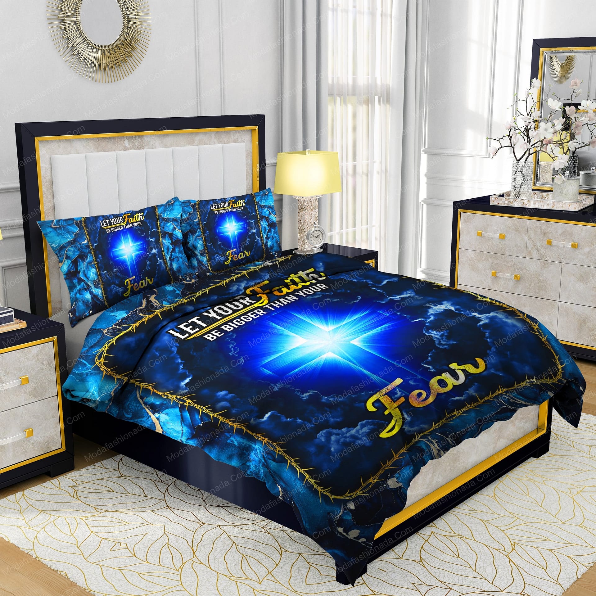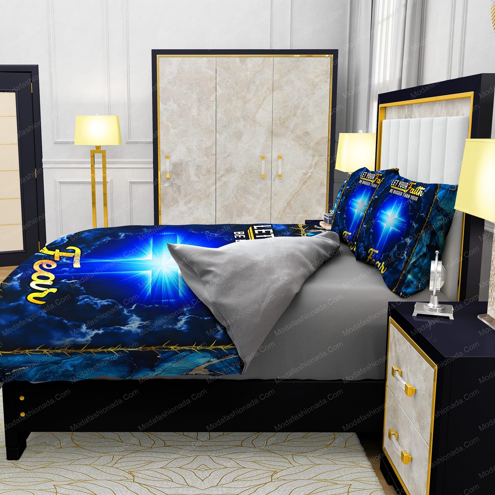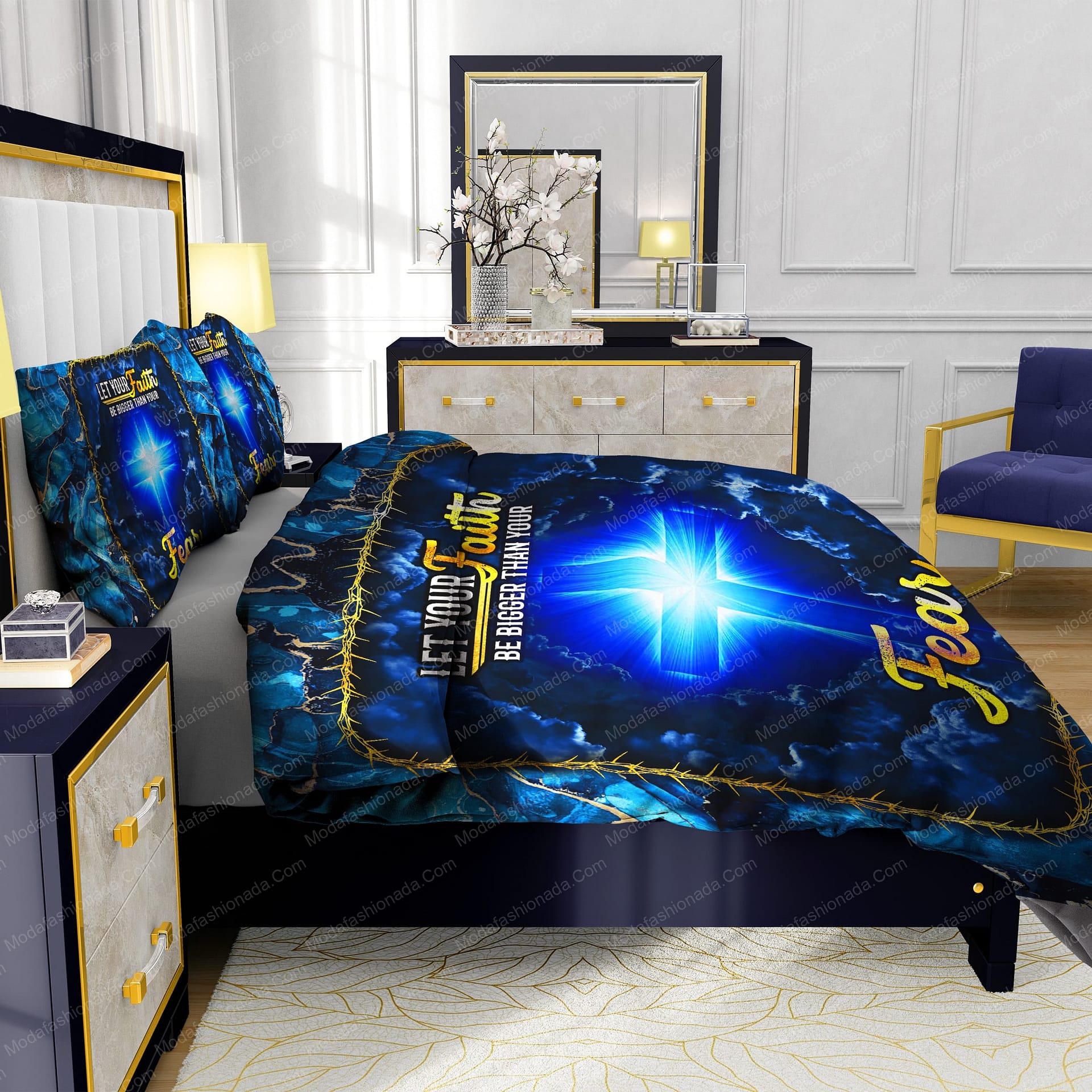 1. Description 2. SIZE CHART 3. PRINTS: Dye-sublimation printing 4. WASHABLE: Machine washable, soft mode. Machine wash cold, only non-chlorine bleach when needed, hang dry, cool iron on the reverse side or dry clean 5. PRODUCTION TIME: 3-5 Business Days. 6.SHIPPING : You will receive an email once your order ships that contain your tracking information. If you haven’t received tracking info within 3-5 business days, please contact us.Soothing bedsheets Jesus Cross Let Your Faith Be Bigger Than Your Fear Bedding Sets make a great refreshing night's sleep.
