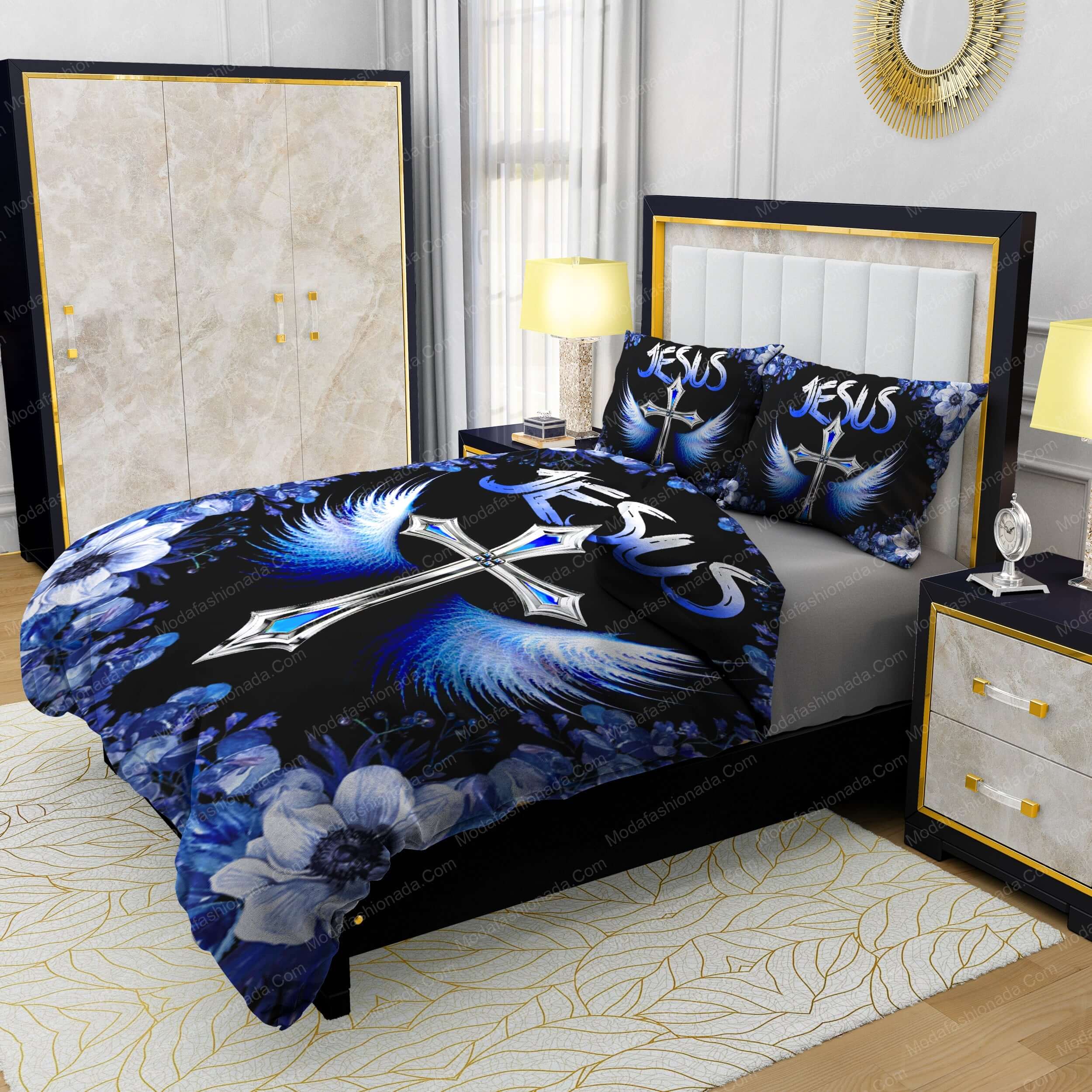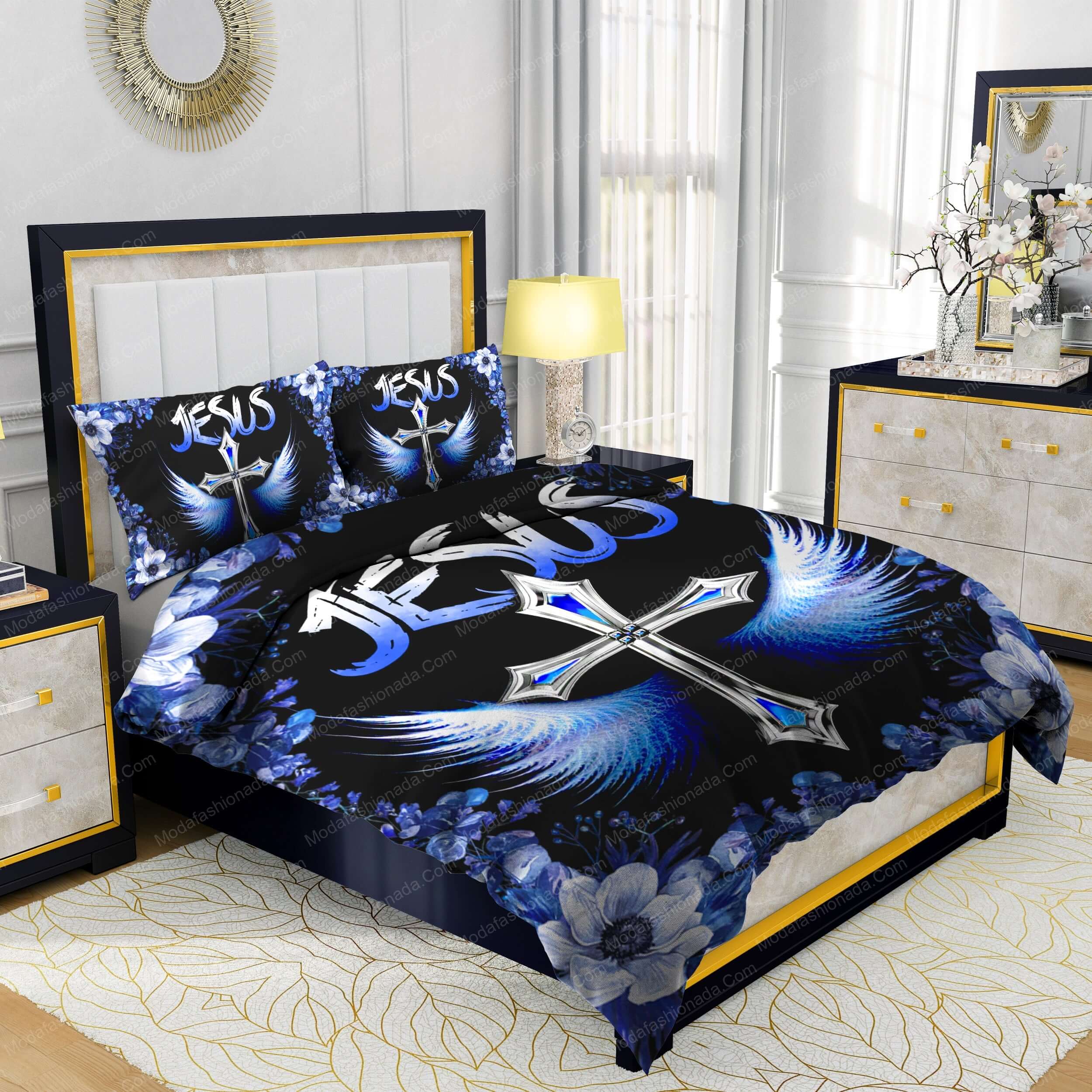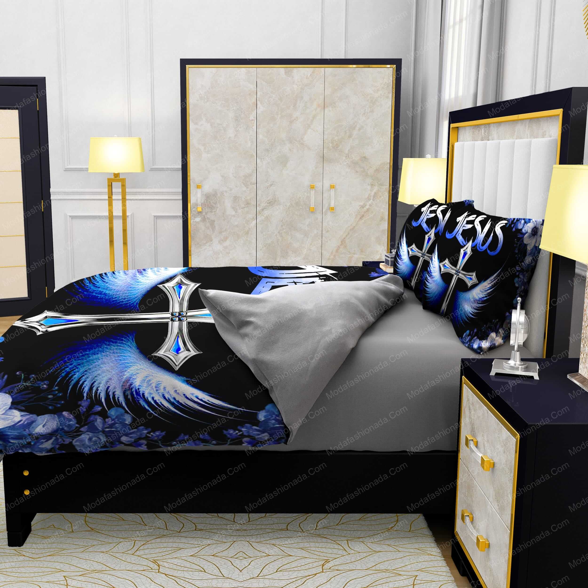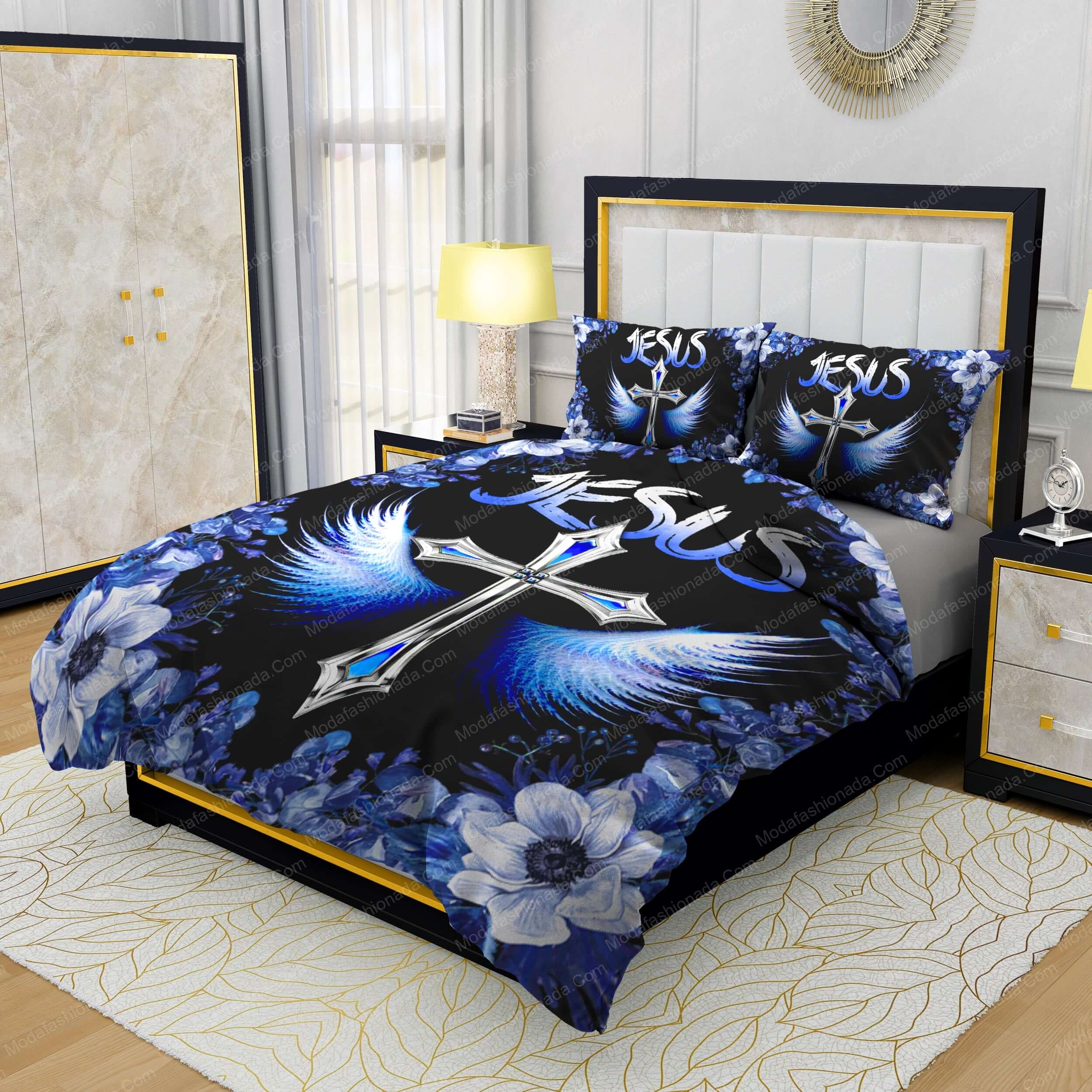 1. Description 2. SIZE CHART 3. PRINTS: Dye-sublimation printing 4. WASHABLE: Machine washable, soft mode. Machine wash cold, only non-chlorine bleach when needed, hang dry, cool iron on the reverse side or dry clean 5. PRODUCTION TIME: 3-5 Business Days. 6.SHIPPING : You will receive an email once your order ships that contain your tracking information. If you haven’t received tracking info within 3-5 business days, please contact us.Soothing bedsheets Jesus Cross Navy Blue Floral Bedding Sets make a great refreshing night's sleep.