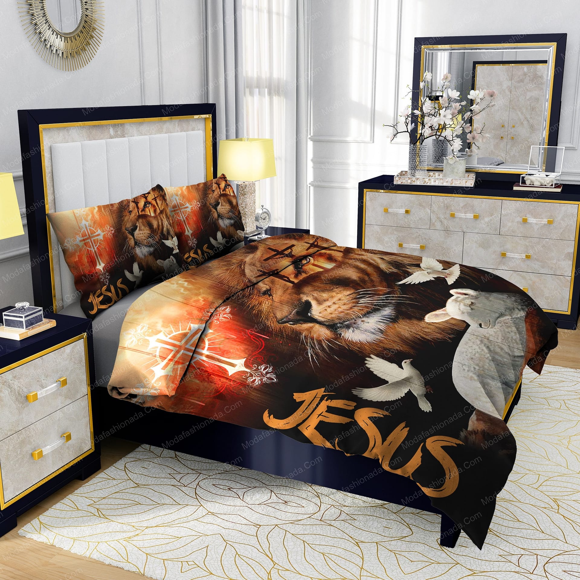 1. Description 2. SIZE CHART 3. PRINTS: Dye-sublimation printing 4. WASHABLE: Machine washable, soft mode. Machine wash cold, only non-chlorine bleach when needed, hang dry, cool iron on the reverse side or dry clean 5. PRODUCTION TIME: 3-5 Business Days. 6.SHIPPING : You will receive an email once your order ships that contain your tracking information. If you haven’t received tracking info within 3-5 business days, please contact us.Soothing bedsheets Jesus Gothic Cross Lion Dove And Sheep Bedding Sets make a great refreshing night's sleep.