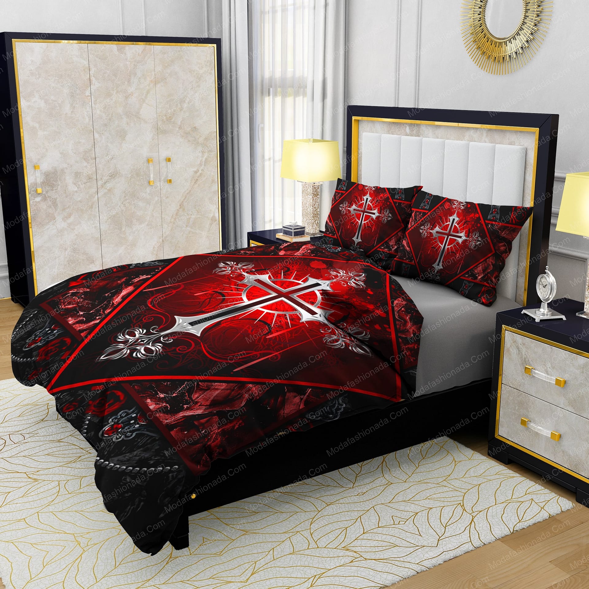 1. Description 2. SIZE CHART 3. PRINTS: Dye-sublimation printing 4. WASHABLE: Machine washable, soft mode. Machine wash cold, only non-chlorine bleach when needed, hang dry, cool iron on the reverse side or dry clean 5. PRODUCTION TIME: 3-5 Business Days. 6.SHIPPING : You will receive an email once your order ships that contain your tracking information. If you haven’t received tracking info within 3-5 business days, please contact us.Soothing bedsheets Jesus Jewelry Gothic Silver Cross Bedding Sets make a great refreshing night's sleep.