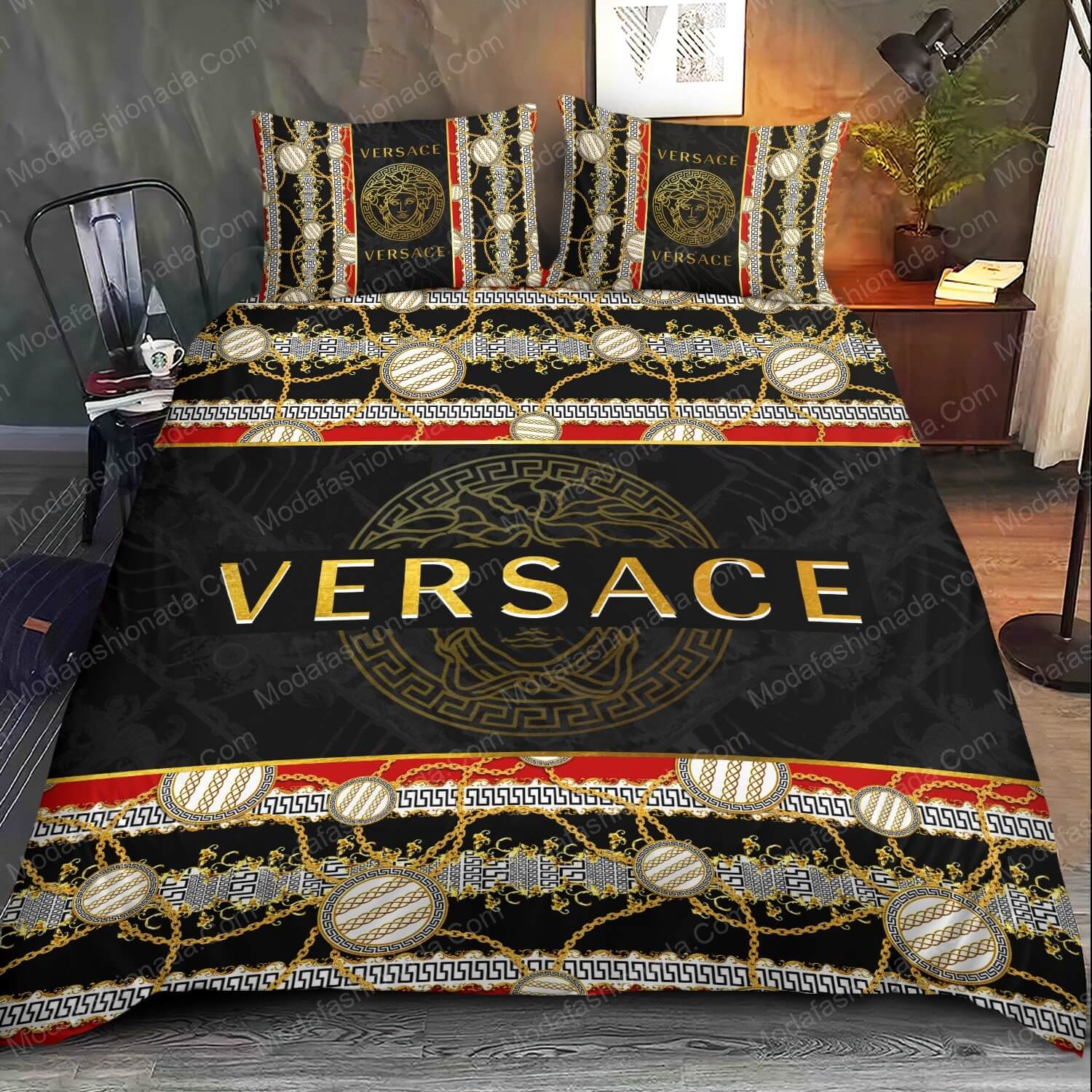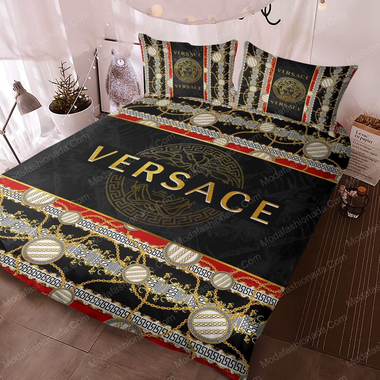 1. Description 2. SIZE CHART 3. PRINTS: Dye-sublimation printing 4. WASHABLE: Machine washable, soft mode. Machine wash cold, only non-chlorine bleach when needed, hang dry, cool iron on the reverse side or dry clean 5. PRODUCTION TIME: 3-5 Business Days. 6.SHIPPING : You will receive an email once your order ships that contain your tracking information. If you haven’t received tracking info within 3-5 business days, please contact us.Soothing bedsheets Luxury Golden Jewelry With Versace Logo Bedding Sets make a great refreshing night's sleep.