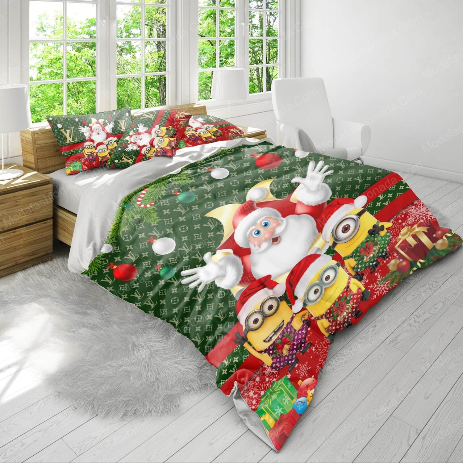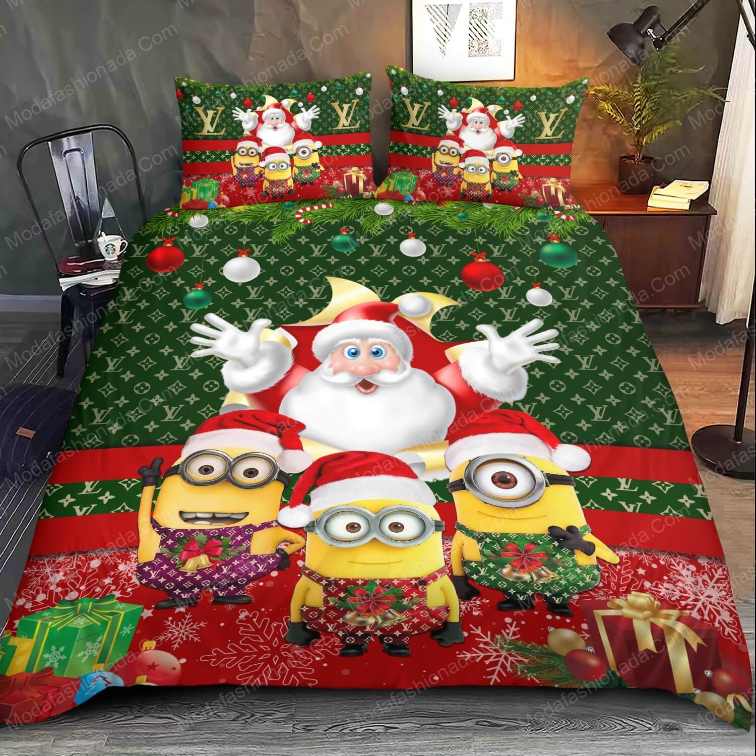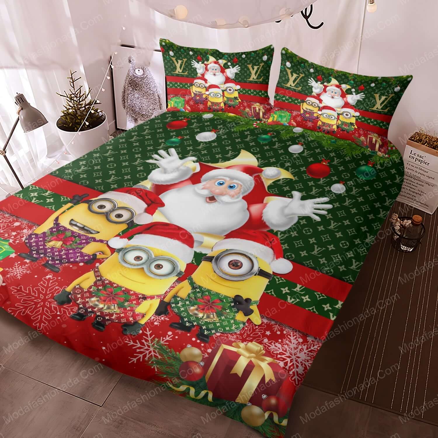 - You deserve better than an average bed linen! With our premium line, product Minions Santa Claus Louis Vuitton Bedding Sets , you show the world that you live your life with class. Go ahead and indulge in luxury, experience unparalleled comfort, and give yourself moments of peace like never before.