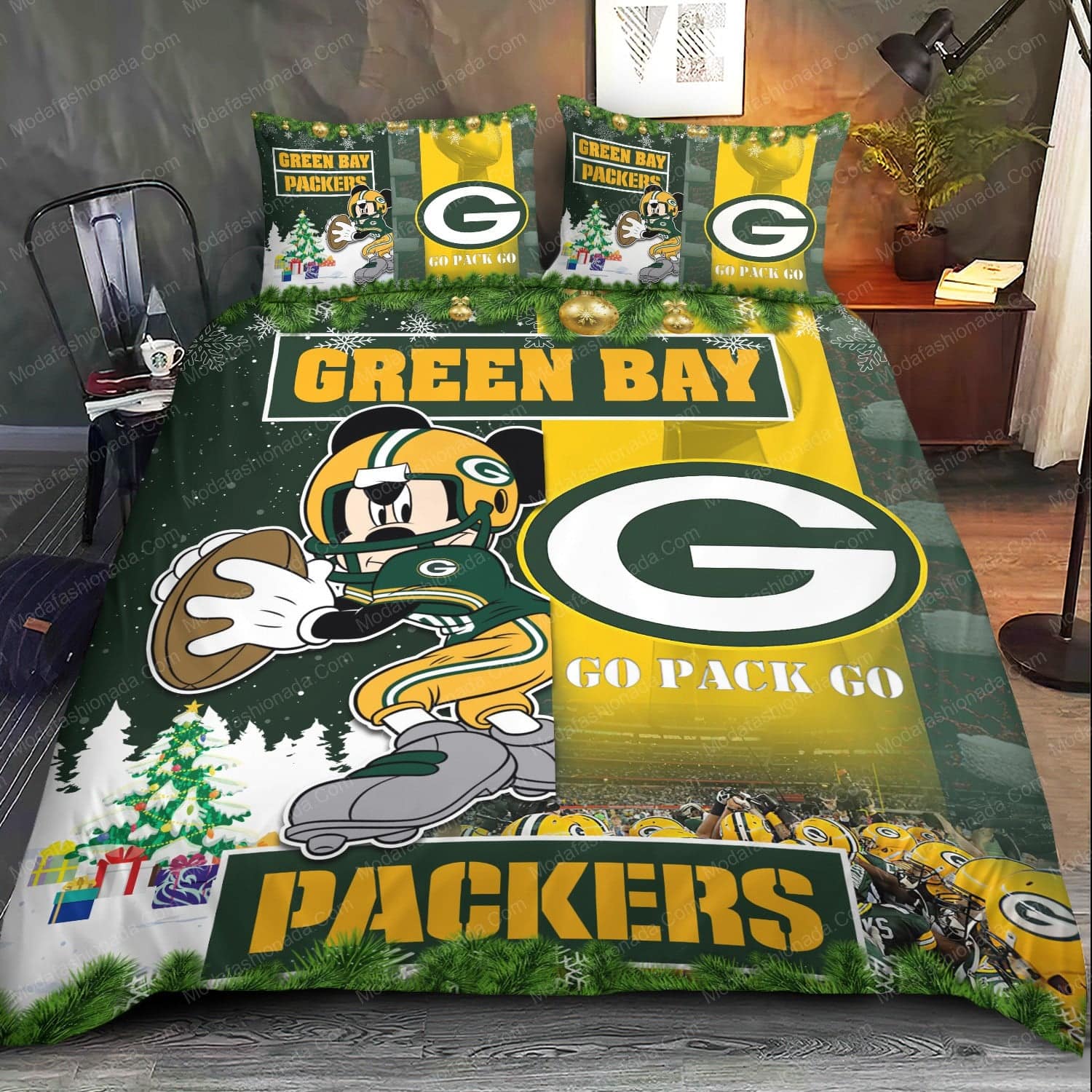 - You deserve better than an average bed linen! With our premium line, product NFL Green Bay Packers Mickey Mouse Bedding Sets , you show the world that you live your life with class. Go ahead and indulge in luxury, experience unparalleled comfort, and give yourself moments of peace like never before.
