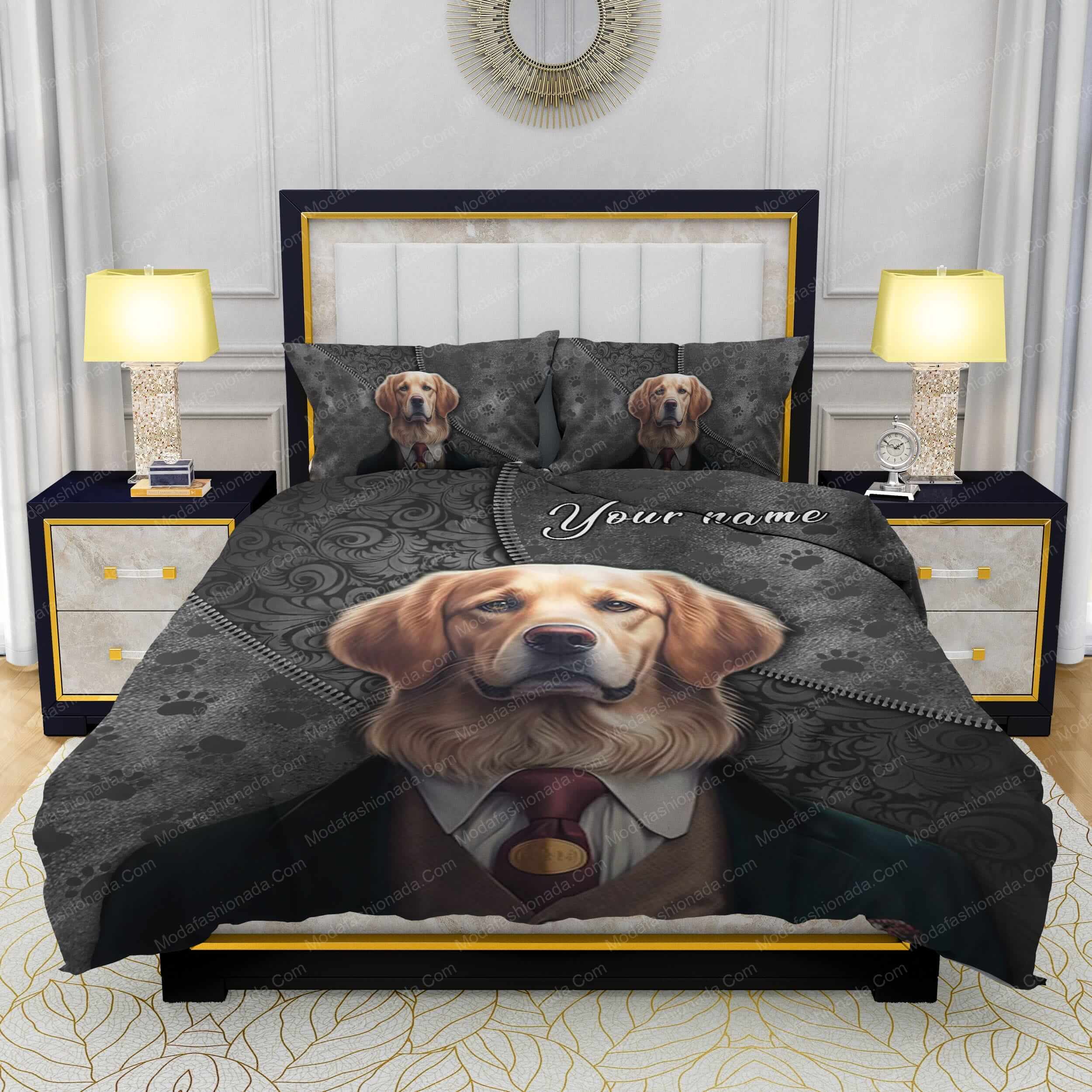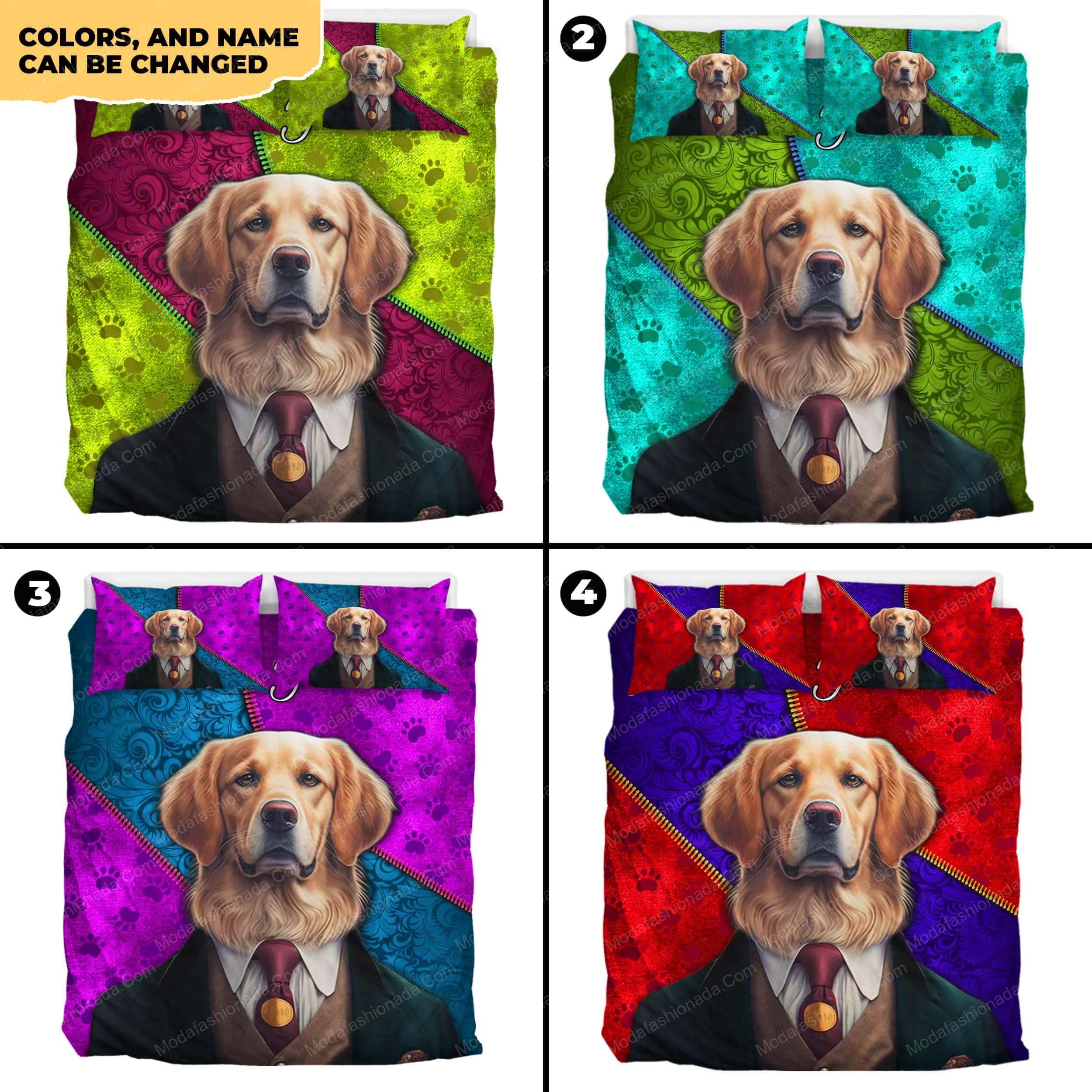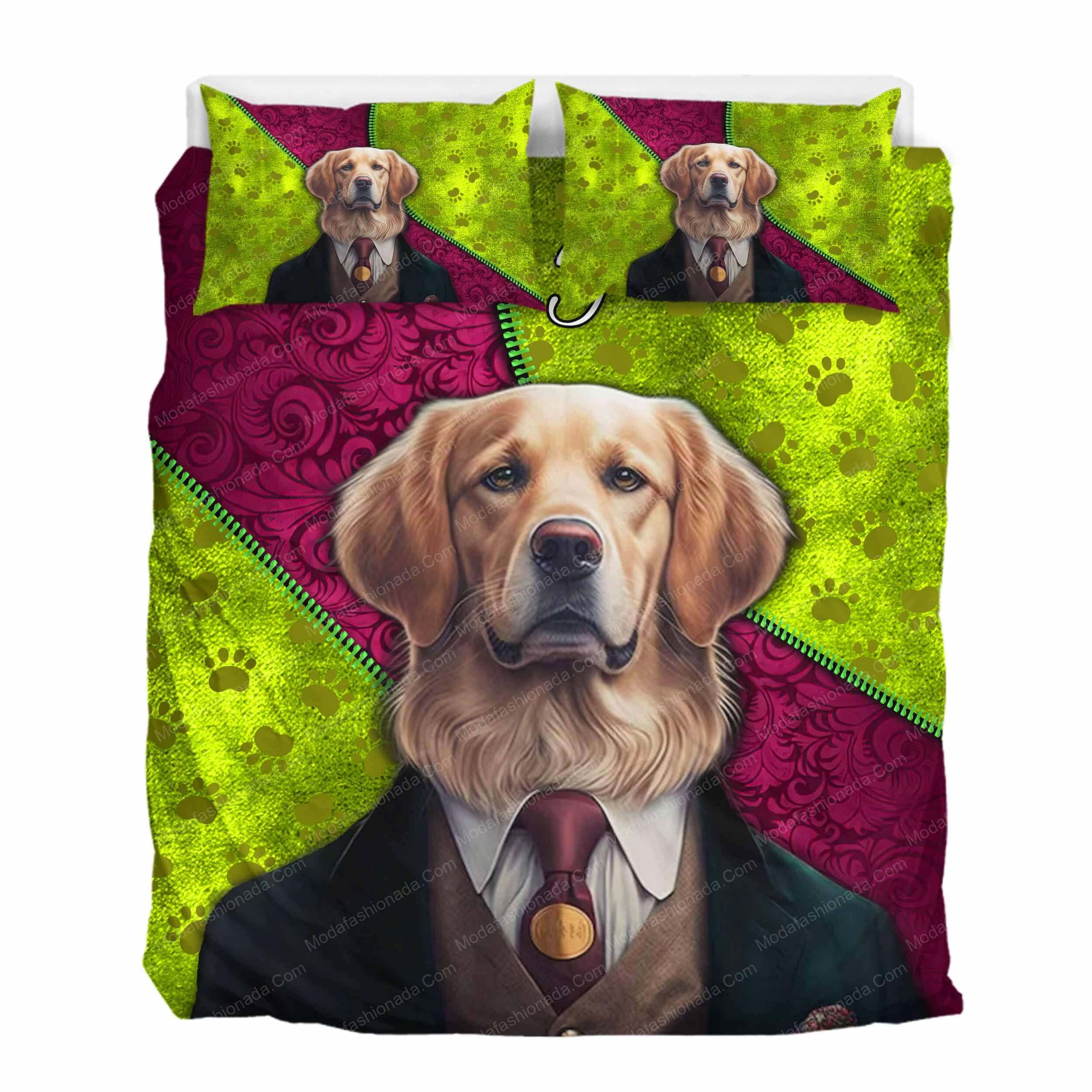 Personalized Funny Golden Retriever Wearing Luxury Vest Bedding Sets
