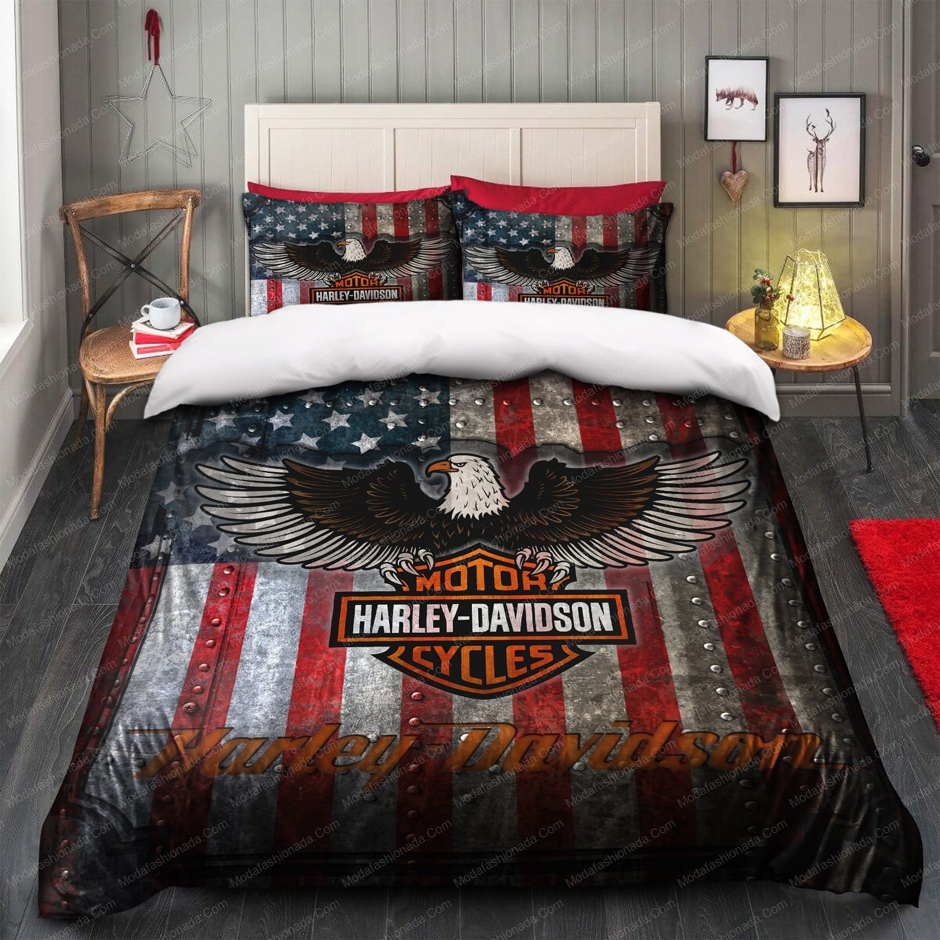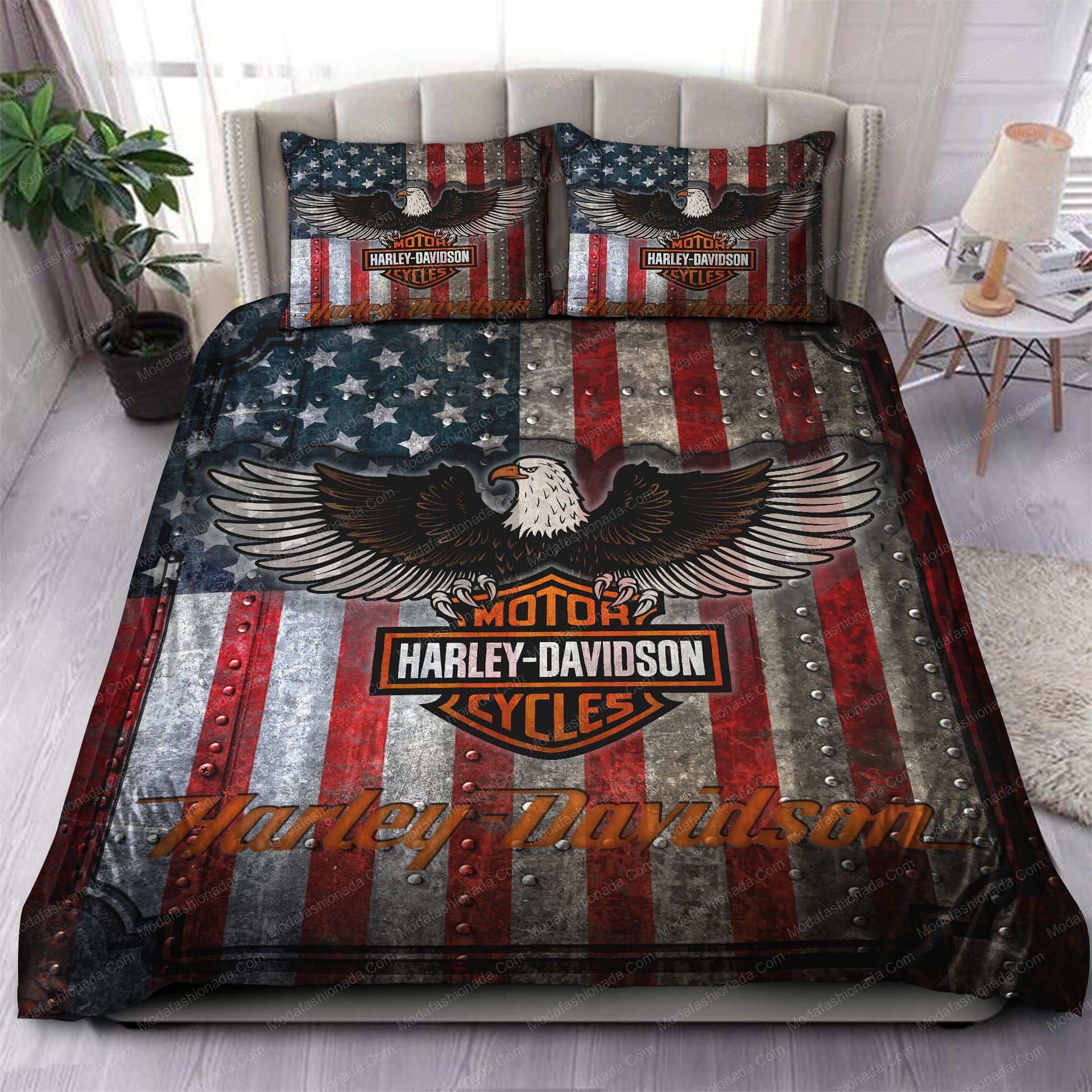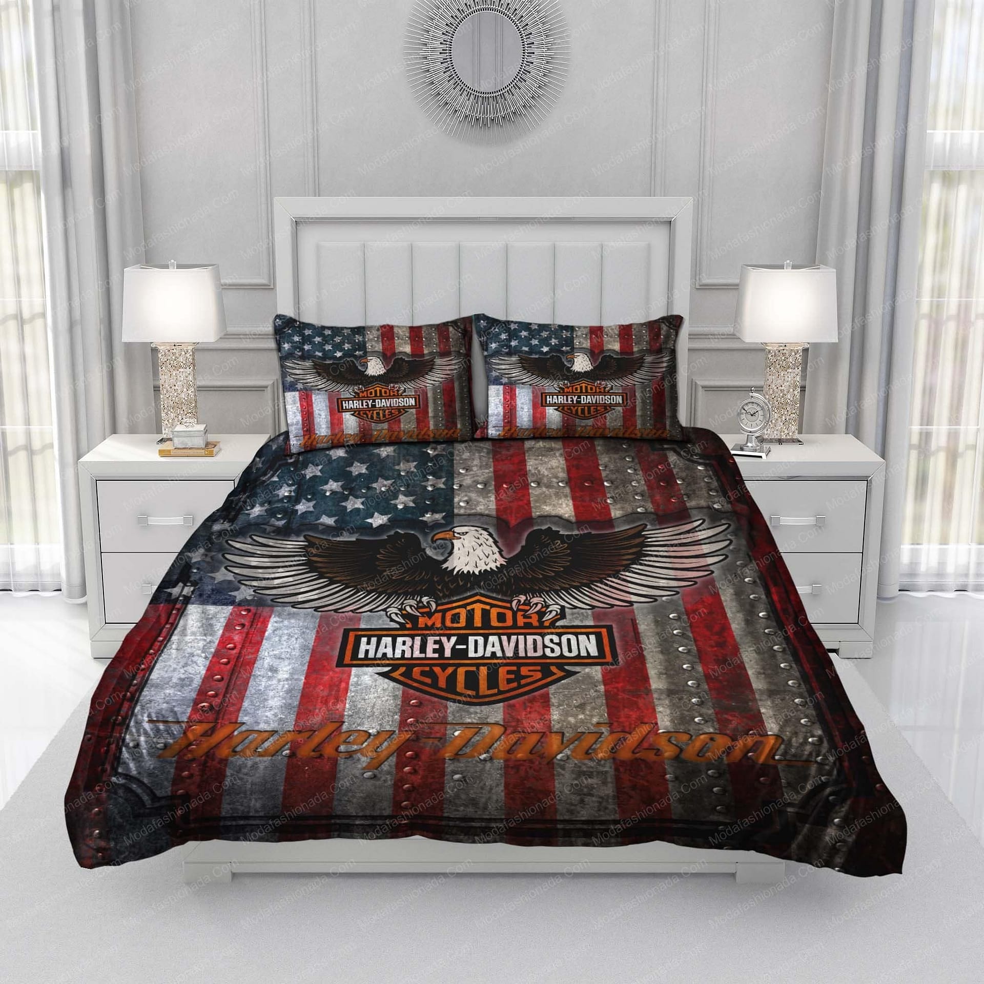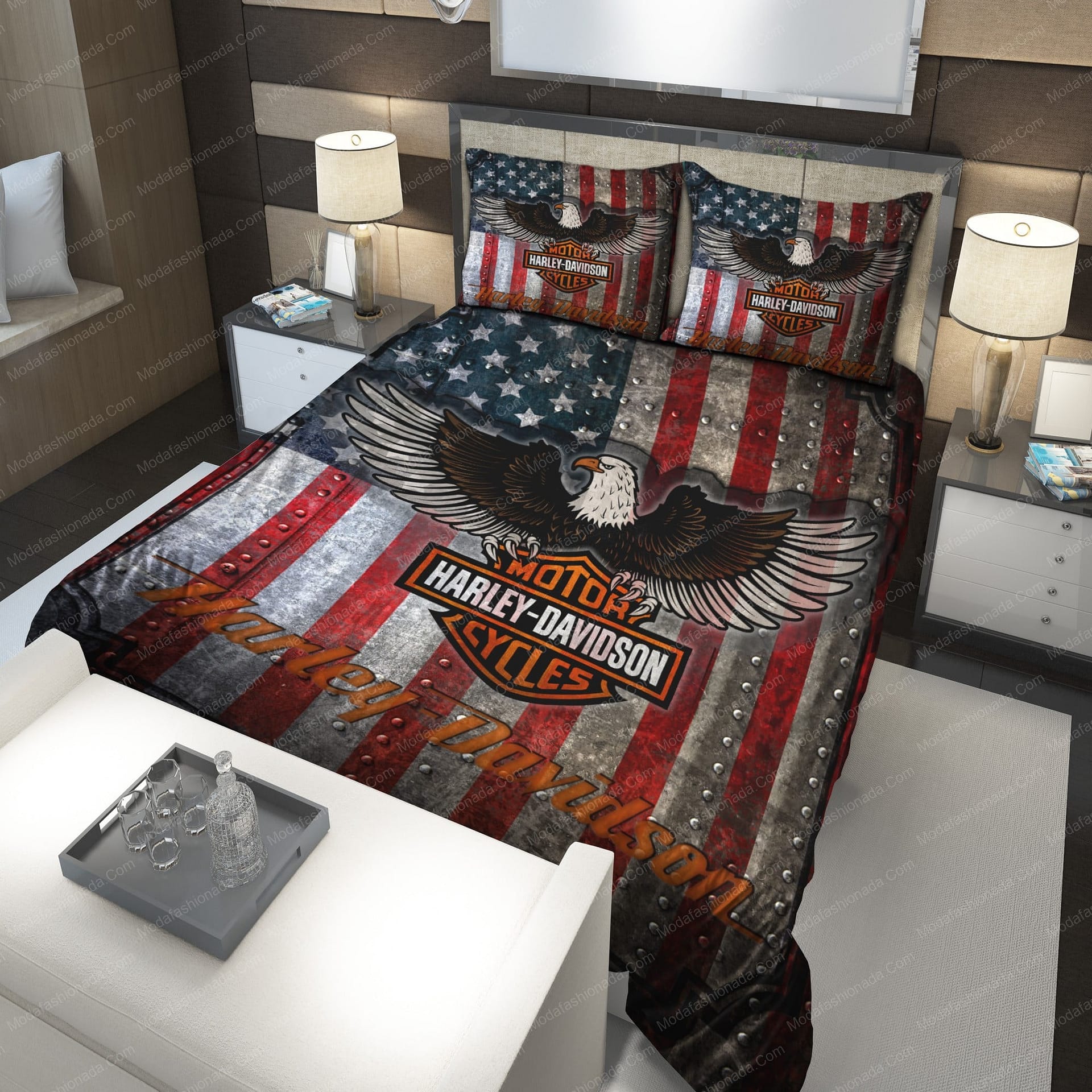 - You deserve better than an average bed linen! With our premium line, product Proud American Flag Eagle Harley Davidson Bedding Sets , you show the world that you live your life with class. Go ahead and indulge in luxury, experience unparalleled comfort, and give yourself moments of peace like never before.