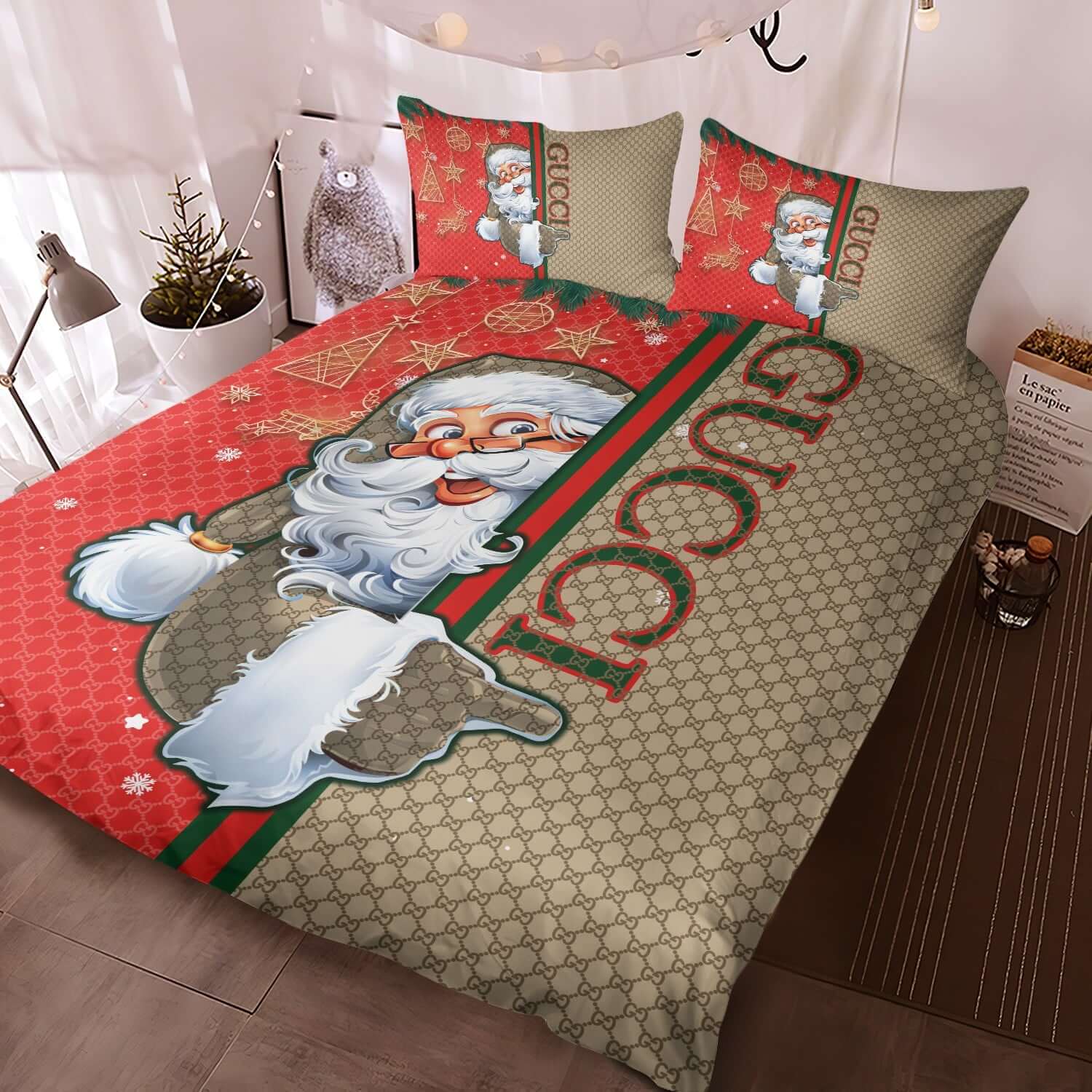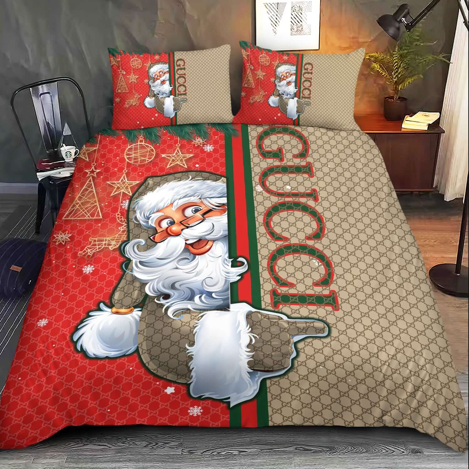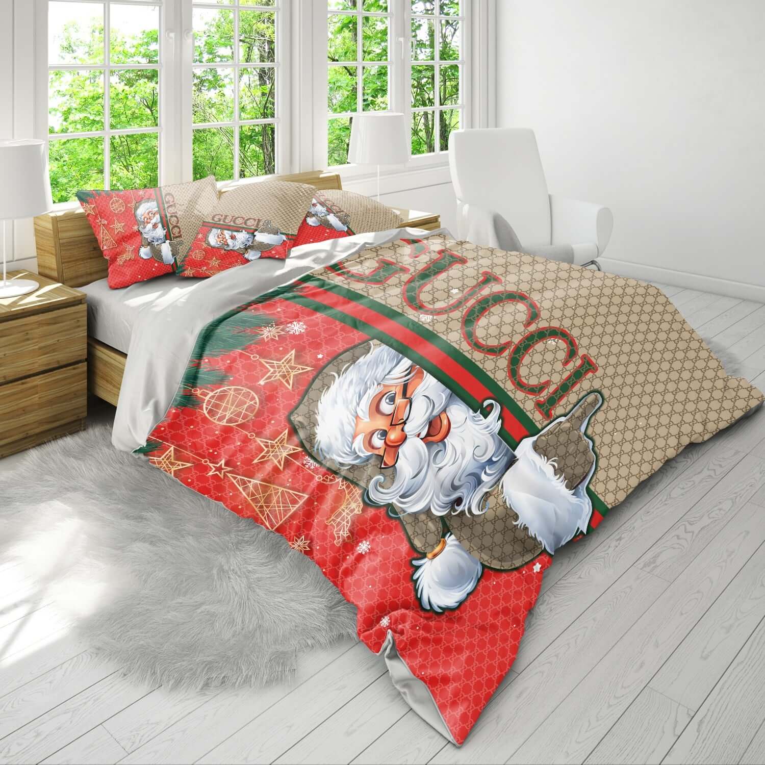 - You deserve better than an average bed linen! With our premium line, product Santa Claus Gucci Pattern Bedding Sets , you show the world that you live your life with class. Go ahead and indulge in luxury, experience unparalleled comfort, and give yourself moments of peace like never before.