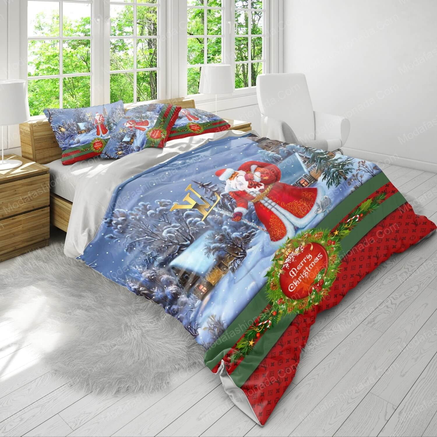 - You deserve better than an average bed linen! With our premium line, product Santa Claus Louis Vuitton Merry Christmas Bedding Sets , you show the world that you live your life with class. Go ahead and indulge in luxury, experience unparalleled comfort, and give yourself moments of peace like never before.