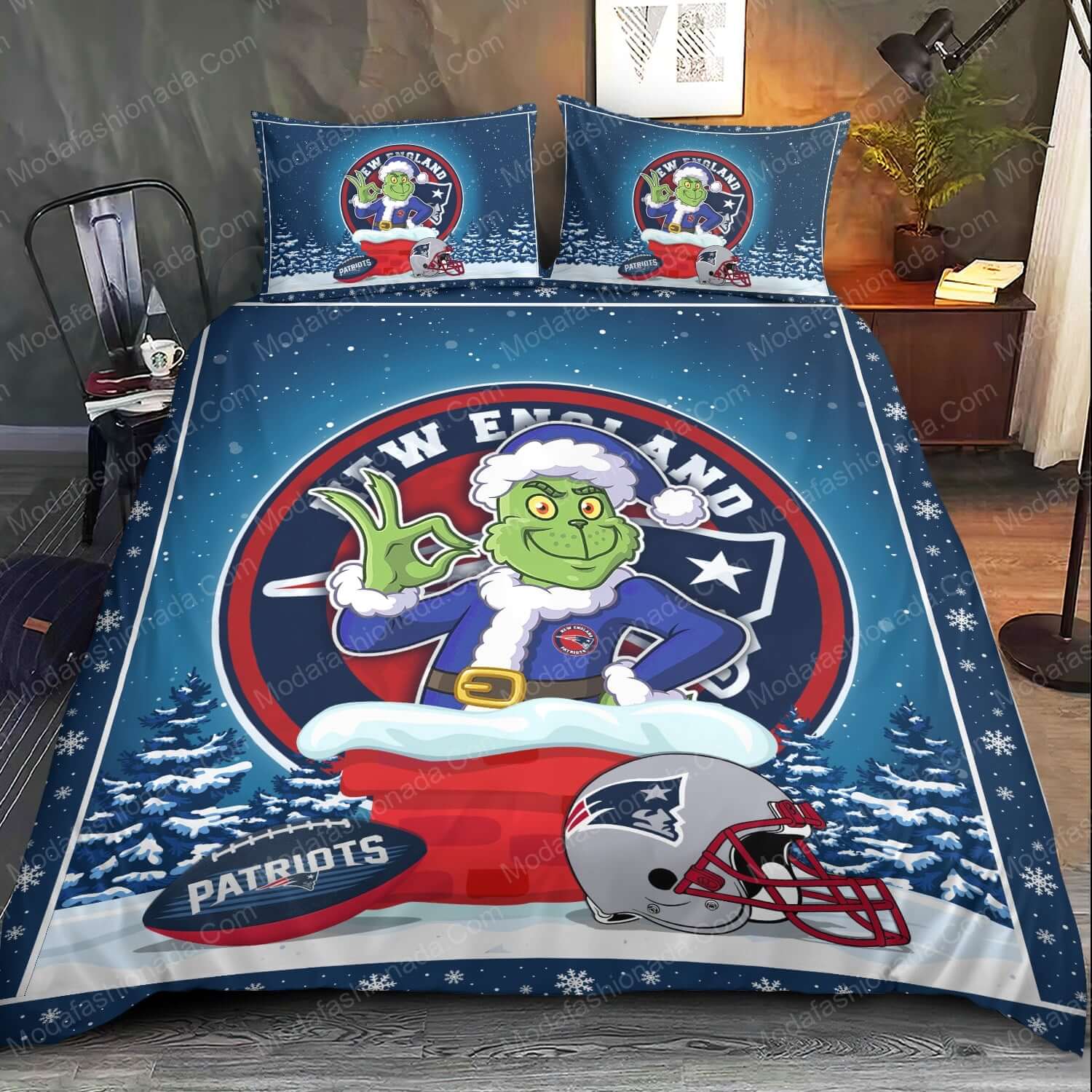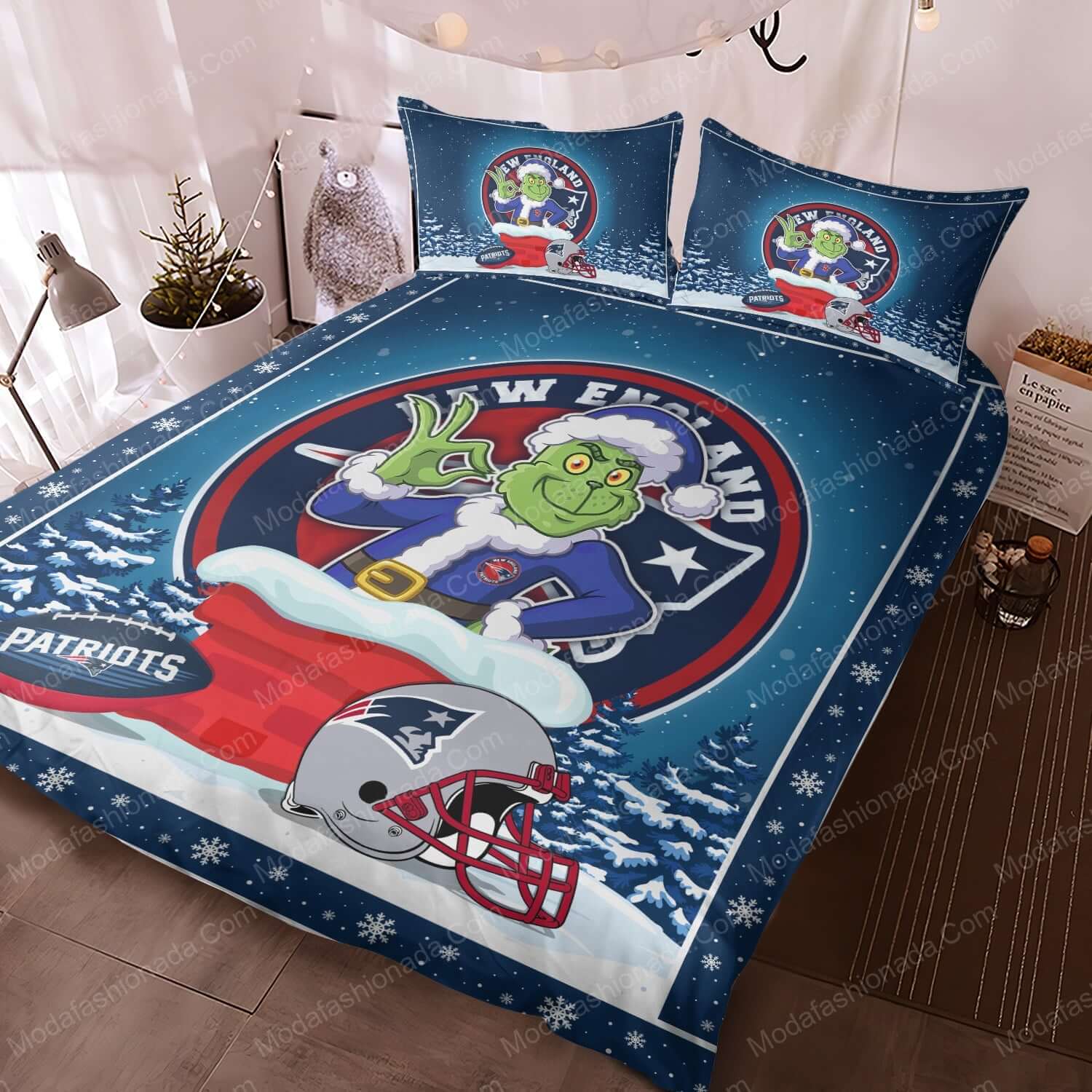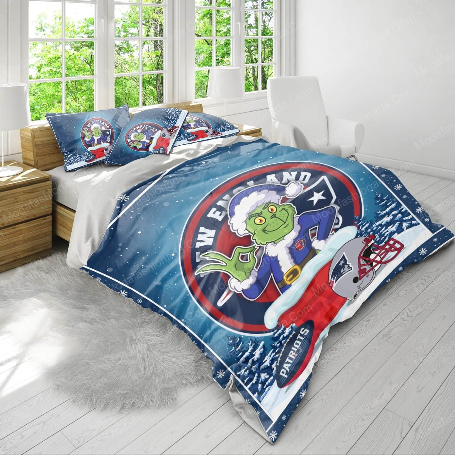 - You deserve better than an average bed linen! With our premium line, product The Grinch NFL New England Patriots Christmas Bedding Sets , you show the world that you live your life with class. Go ahead and indulge in luxury, experience unparalleled comfort, and give yourself moments of peace like never before.